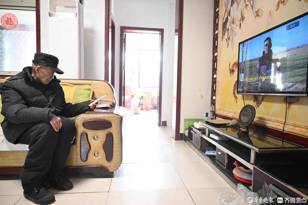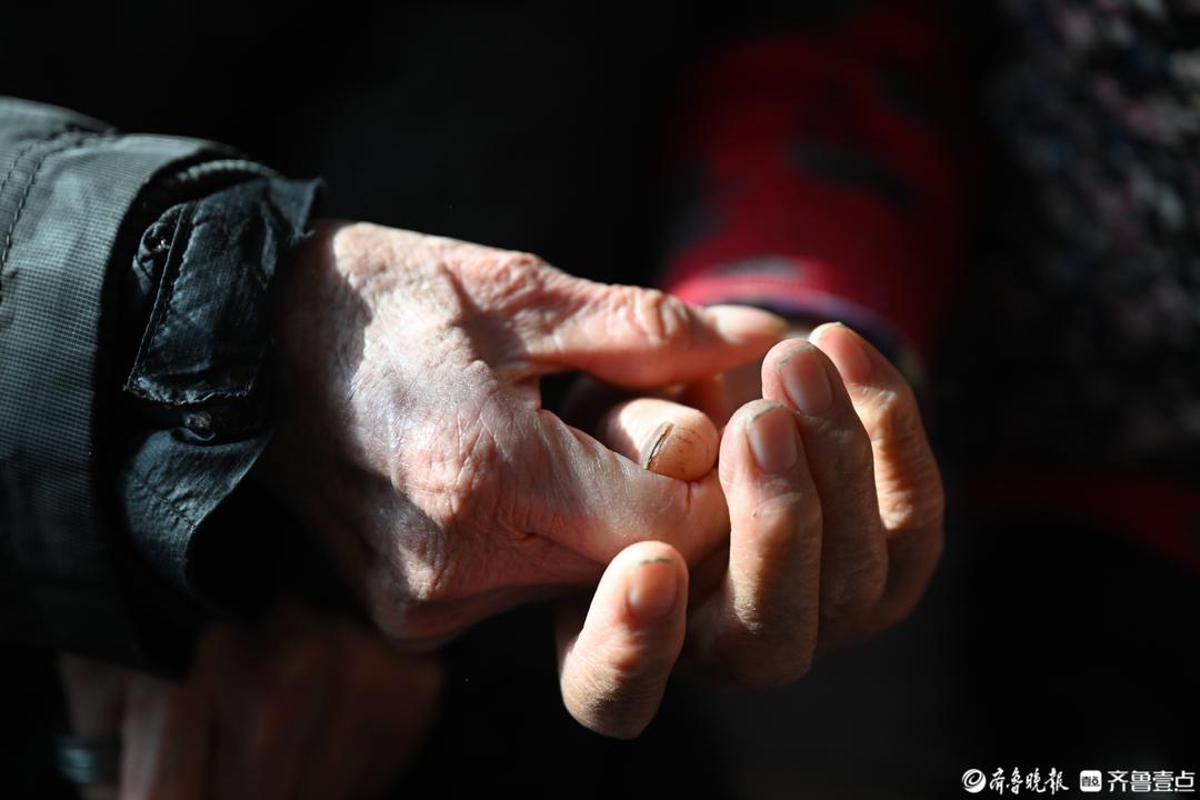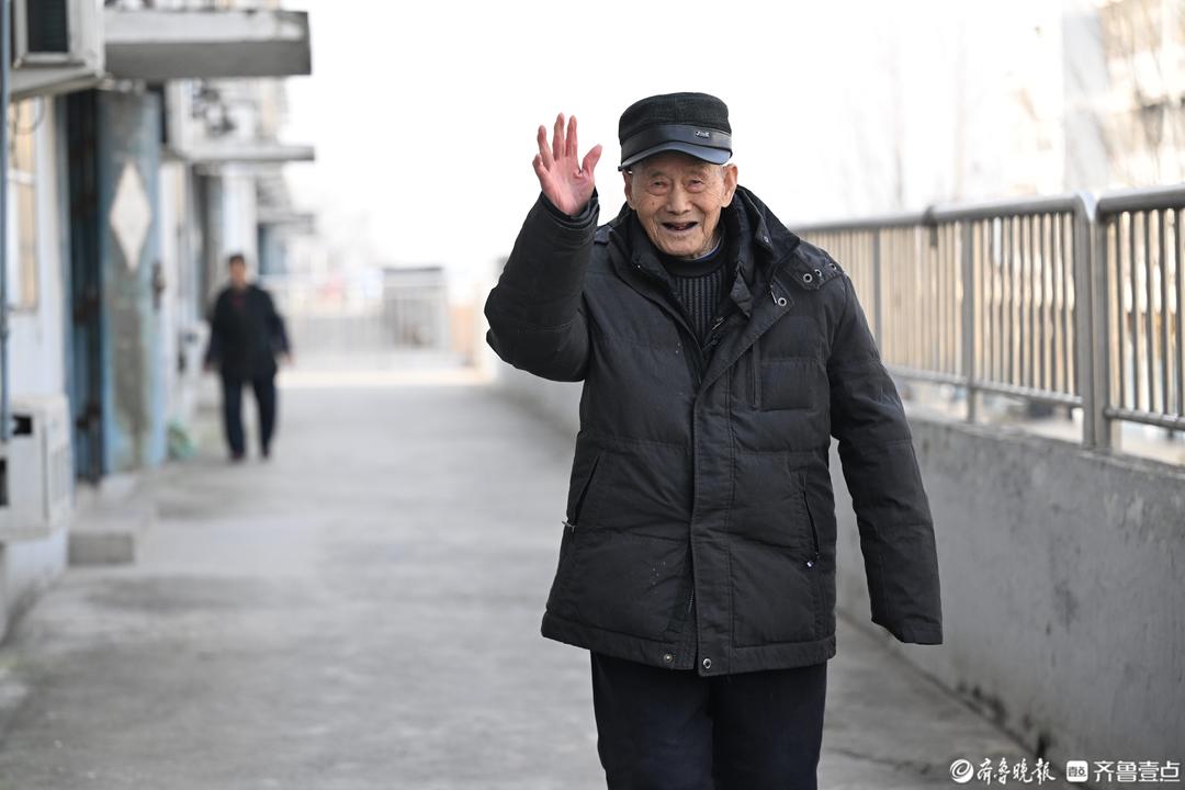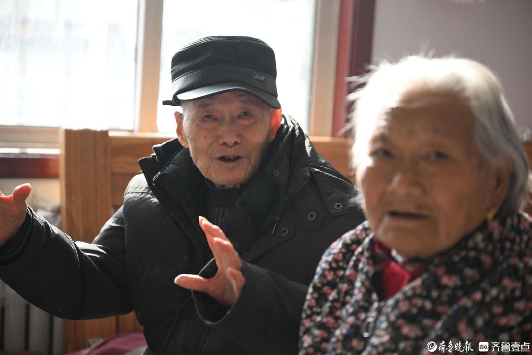 12月10日,在济南市平阴县孝直镇和圣苑社区,101岁的李明山聊起往事,犹如打开了话匣子,滔滔不绝。儿子李允安说,父亲经常忘事,有时候一天要问他好几遍今天是几号,但是对于过去的事情,他却记忆犹新,经常给人讲起。