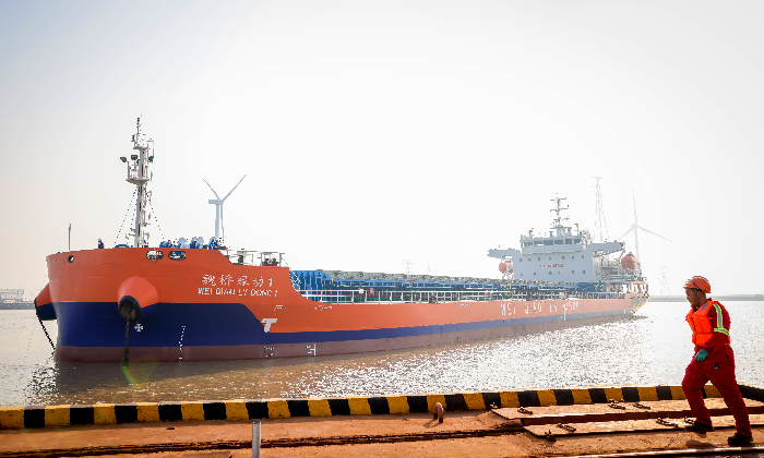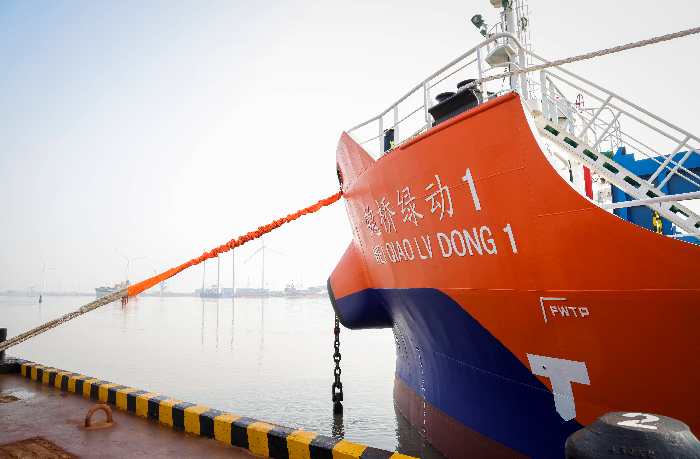 12月28日,全球首艘万吨级近海新能源散货船“魏桥绿动1”轮首靠岸在滨州市套尔河港区无棣创业码头。
