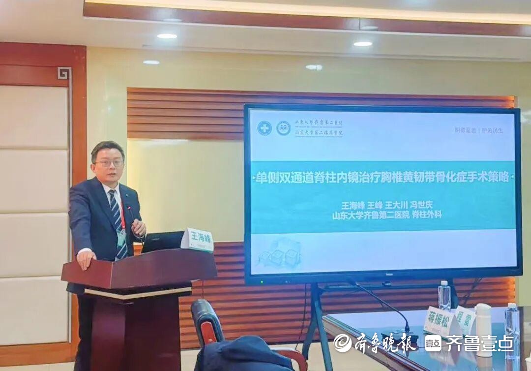 山东大学齐鲁医院程雷教授结合多年临床经验,以《脊柱内镜在颈椎手术的应用策略》为题,深入解析颈椎内镜手术的核心要点与临床决策思路;山东大学齐鲁第二医院王海峰教授带来《UBE治疗胸椎黄韧带骨化症手术策略》专题分享,细致拆解手术操作流程与细节把控技巧;山东第一医科大学附属省立医院蒋振松教授现场开展手术直播演示,程雷教授、王海峰教授同步进行专业解读,线上线下参会同仁围绕手术案例展开热烈研讨,直观呈现UBE技术的临床应用精髓;其余授课专家结合UBE技术相关指南共识,系统讲解了该技术在颈椎、腰椎疾病治疗中的操作规范及麻醉管理要点,为参会者提供了全面系统的知识体系。