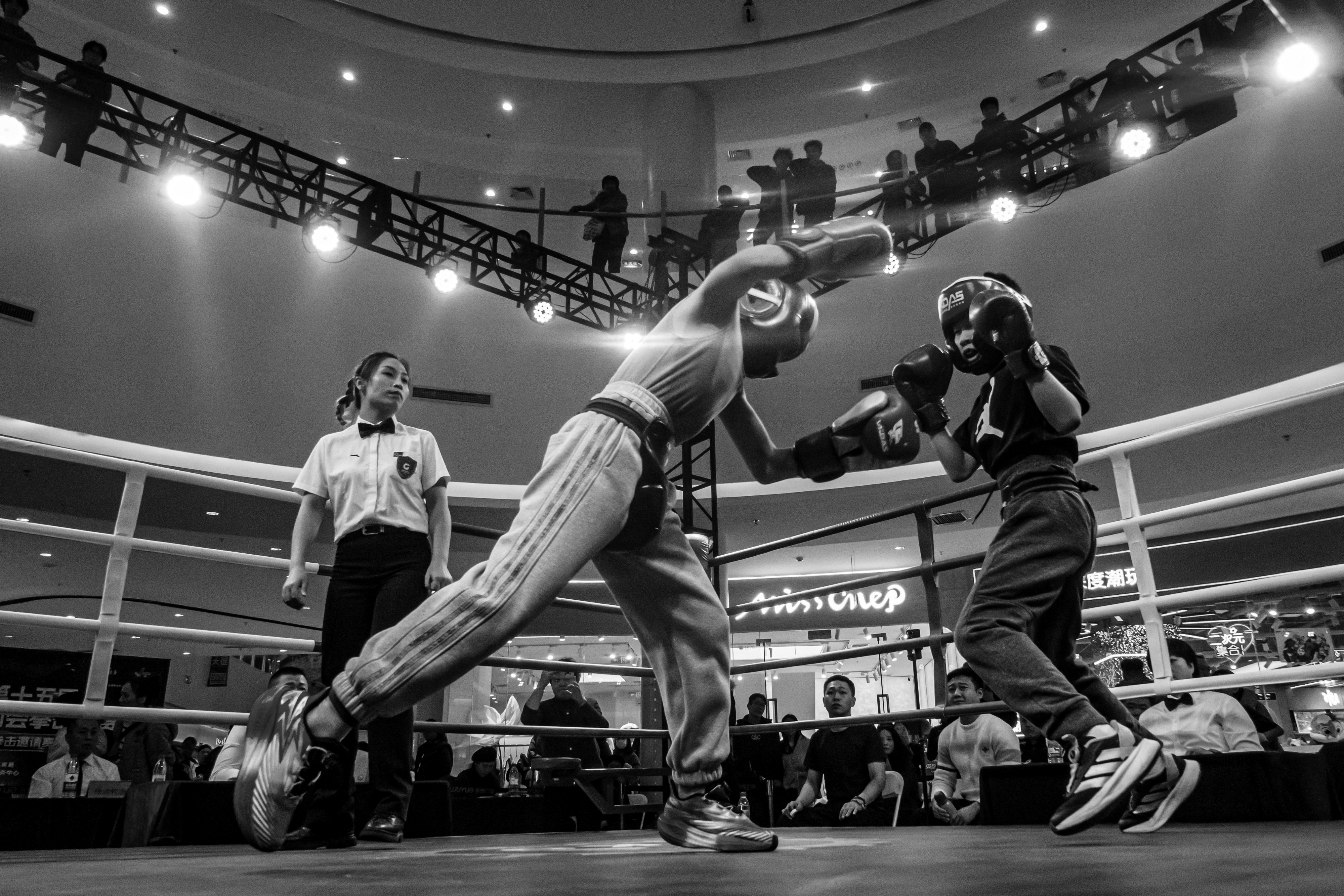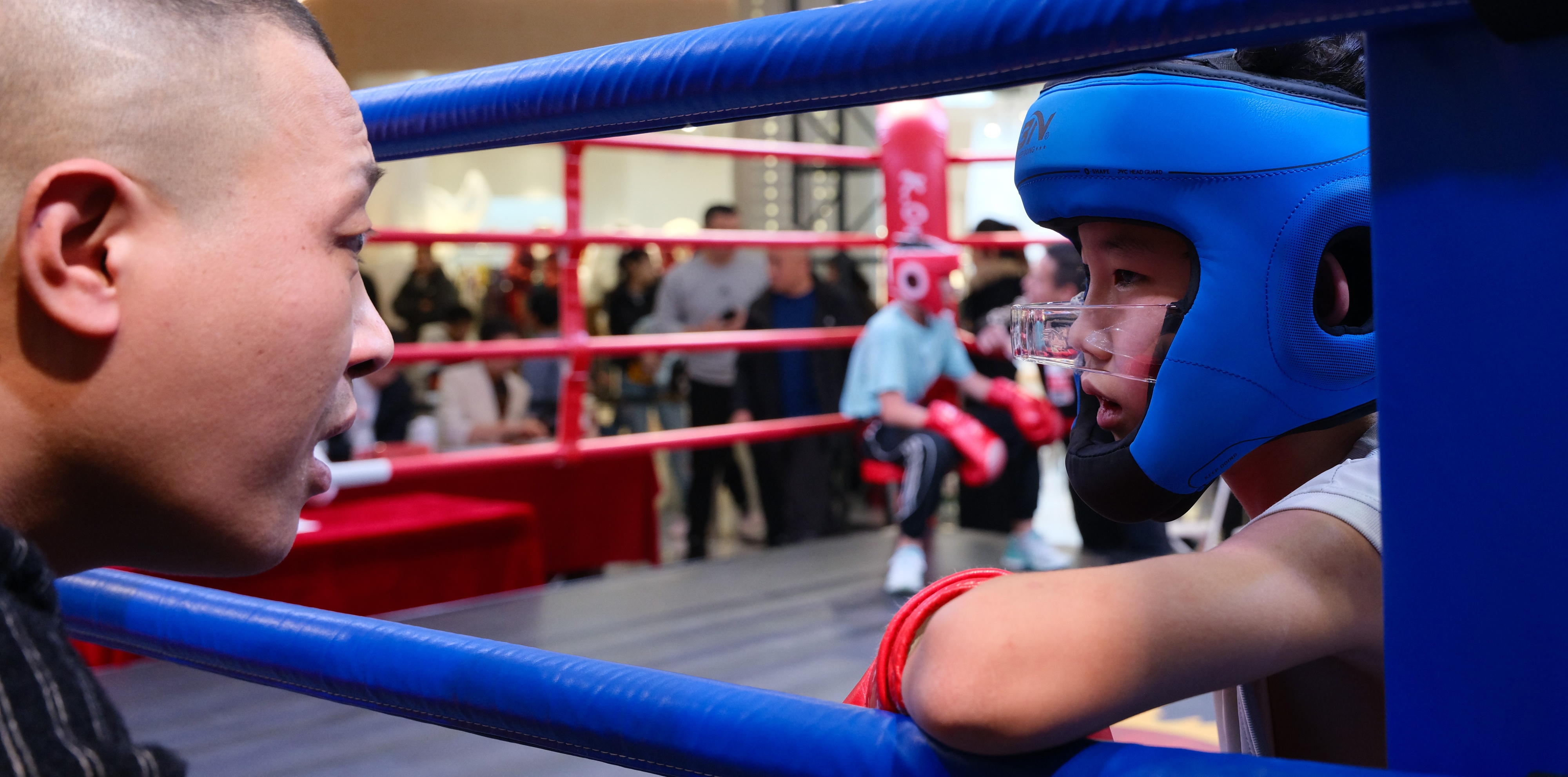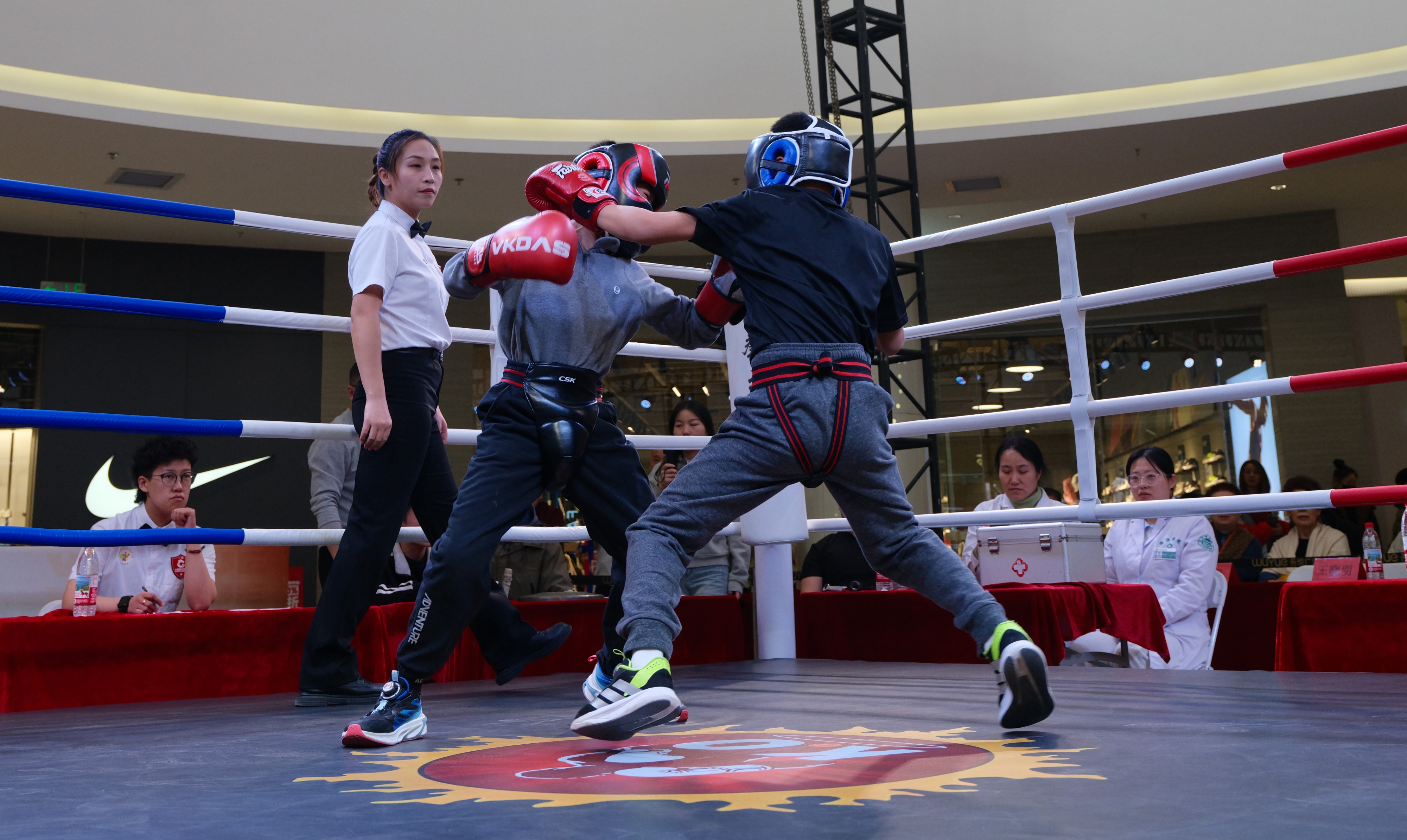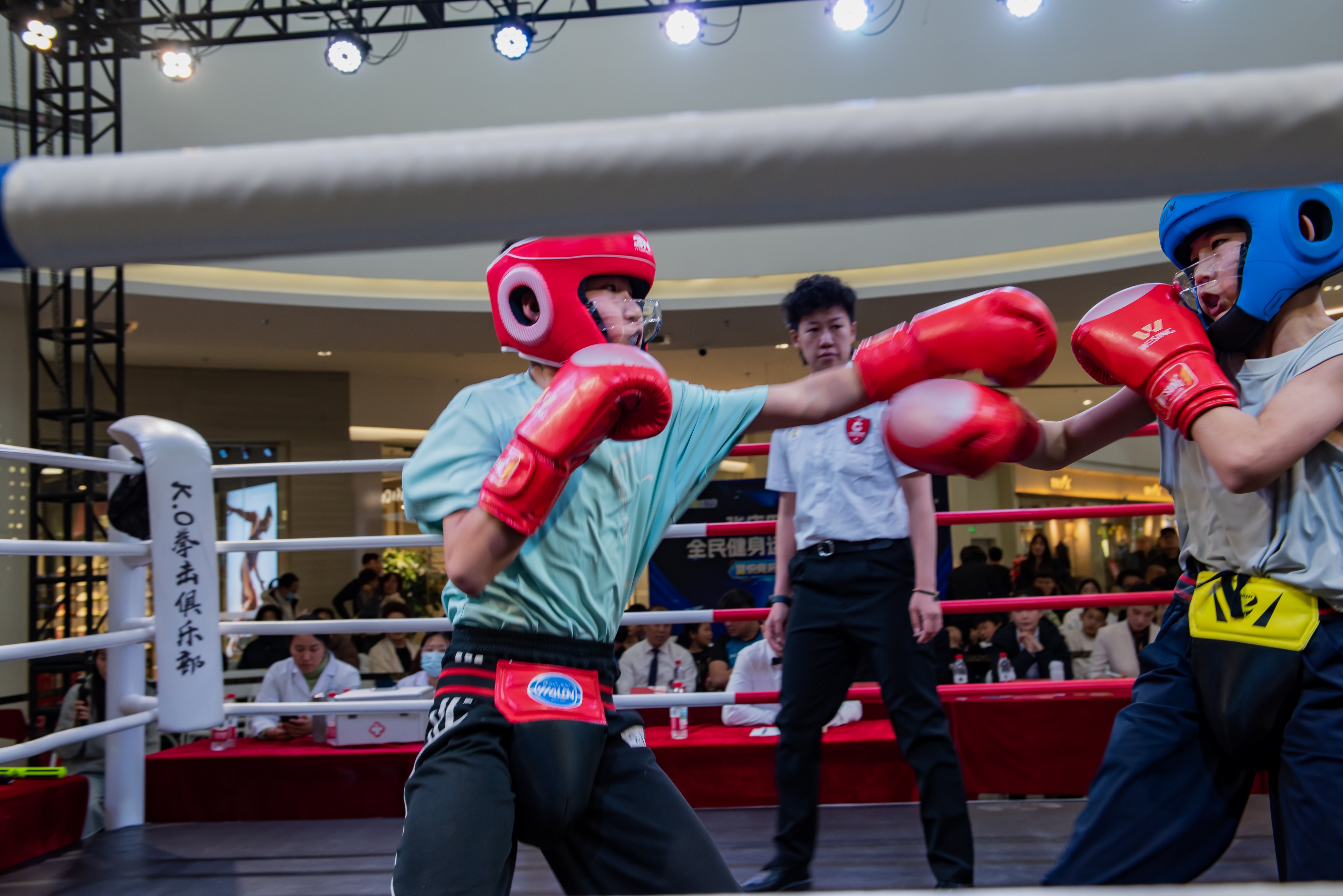 12月27日下午3点,淄博市张店区第十五届全民健身运动会拳击比赛在华光路鑫马吾悦广场中厅热血开赛。来自张店区各街道、社区及健身俱乐部的数十名拳击爱好者齐聚赛场,以拳会友,尽显运动激情与拼搏风采。
