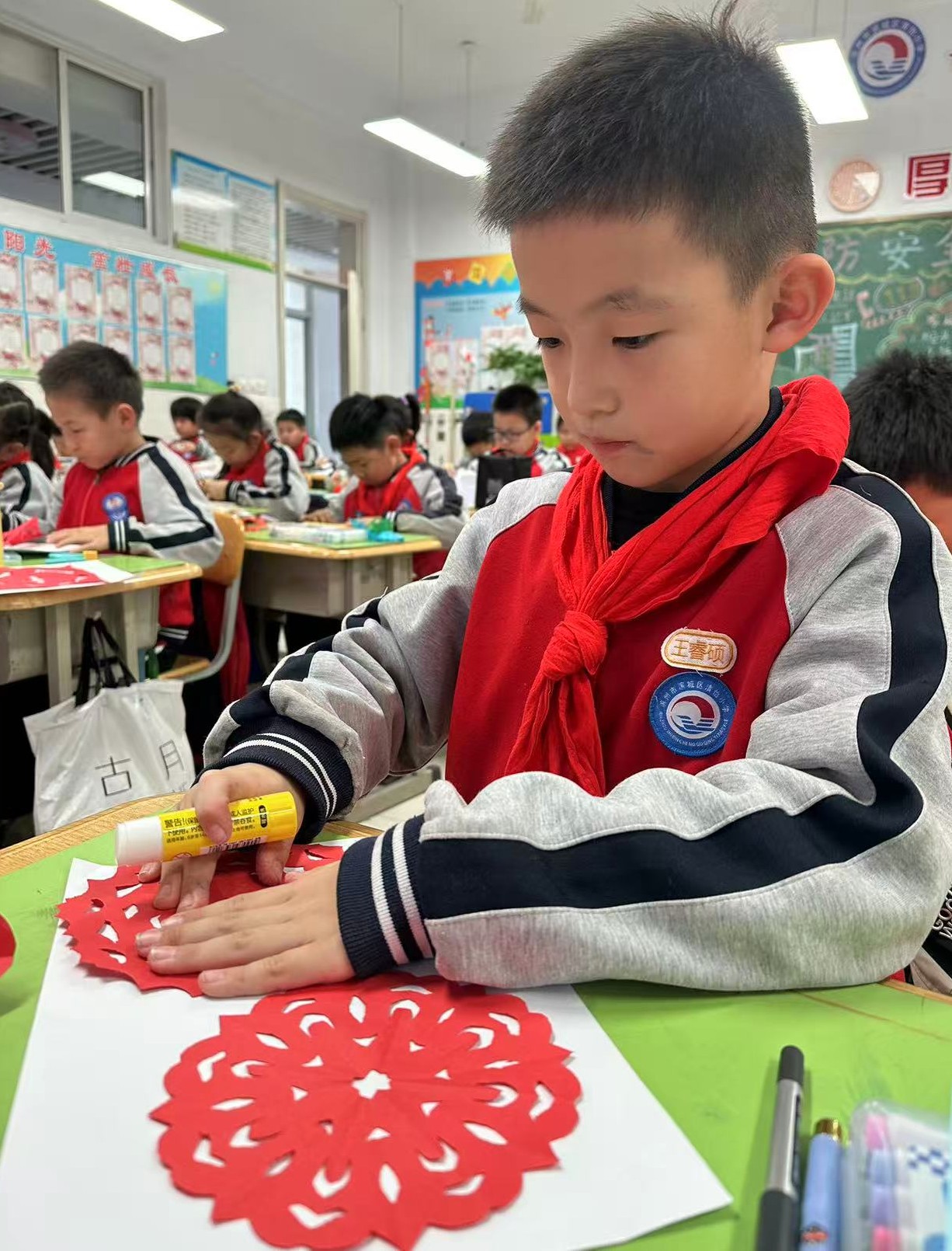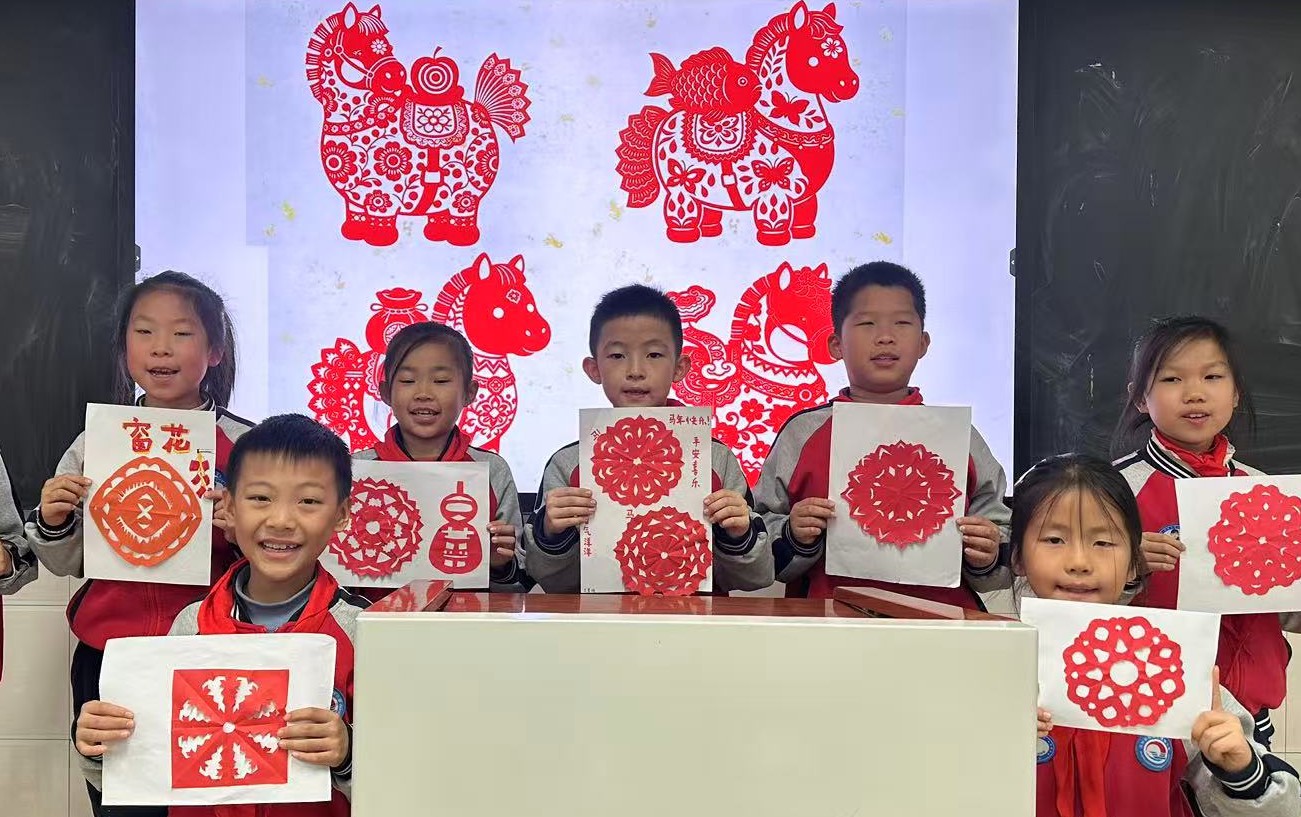 迎新年”活动,老师与学生们一起剪窗花,贴窗花,在作品制作中,培养孩子们的动手能力,感受传统文化的艺术魅力,喜迎新年的到来。