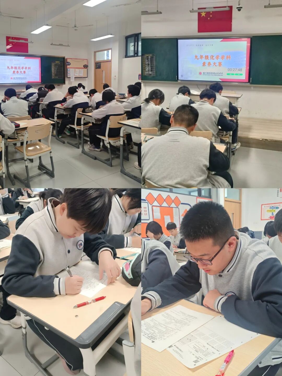 化学学科素养大赛以“检验基础、提升素养、激发兴趣”为核心目标,吸引了全校初中九年级数百名同学踊跃参与。大赛题型以客观题为主,全面覆盖课本核心知识点、化学实验原理、生活中的化学常识等内容,既注重考查同学们对基础概念的掌握程度,也兼顾对学科思维能力的检测。