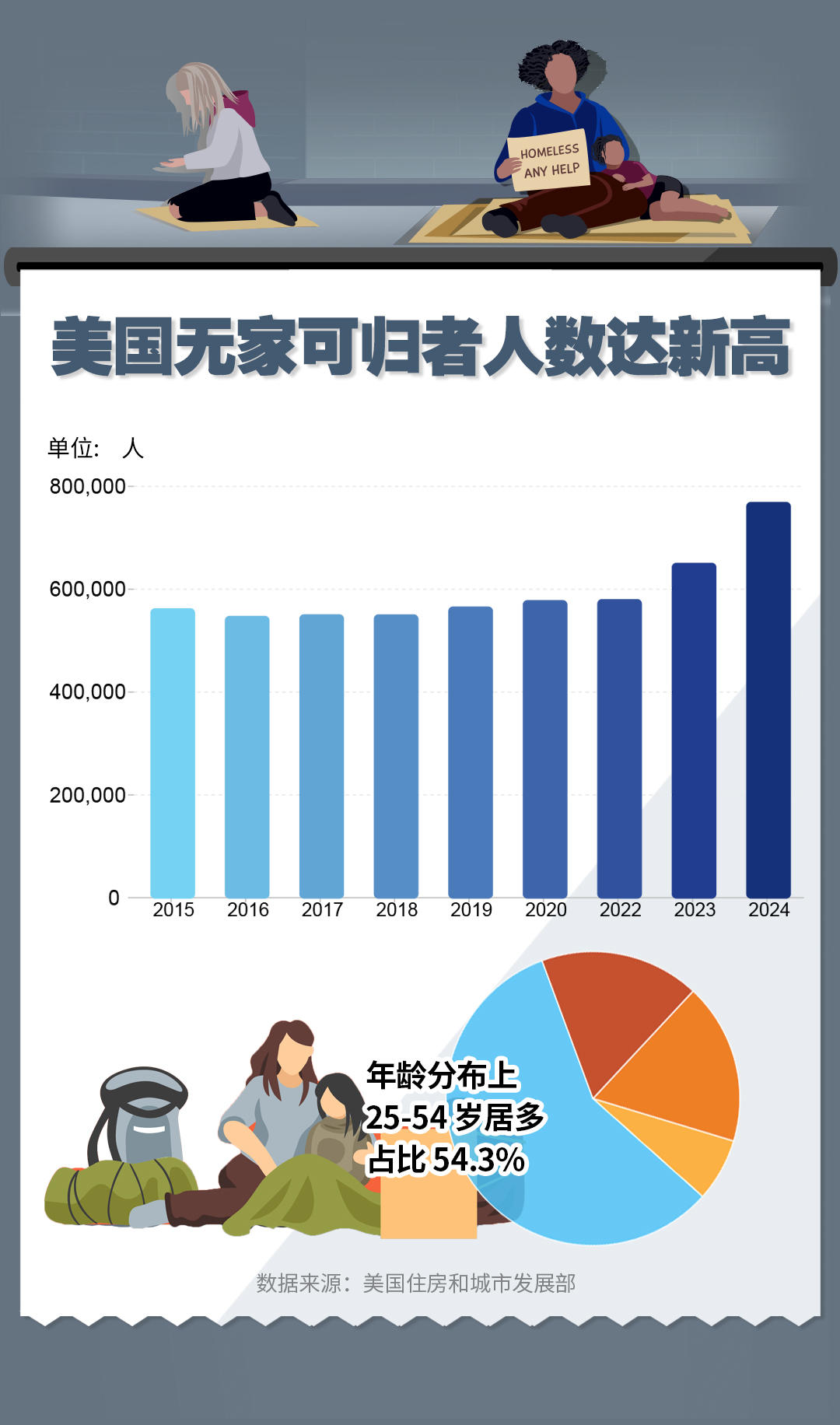 2024年,美国无家可归者总数突破78万人,规模和增速创历史新高。