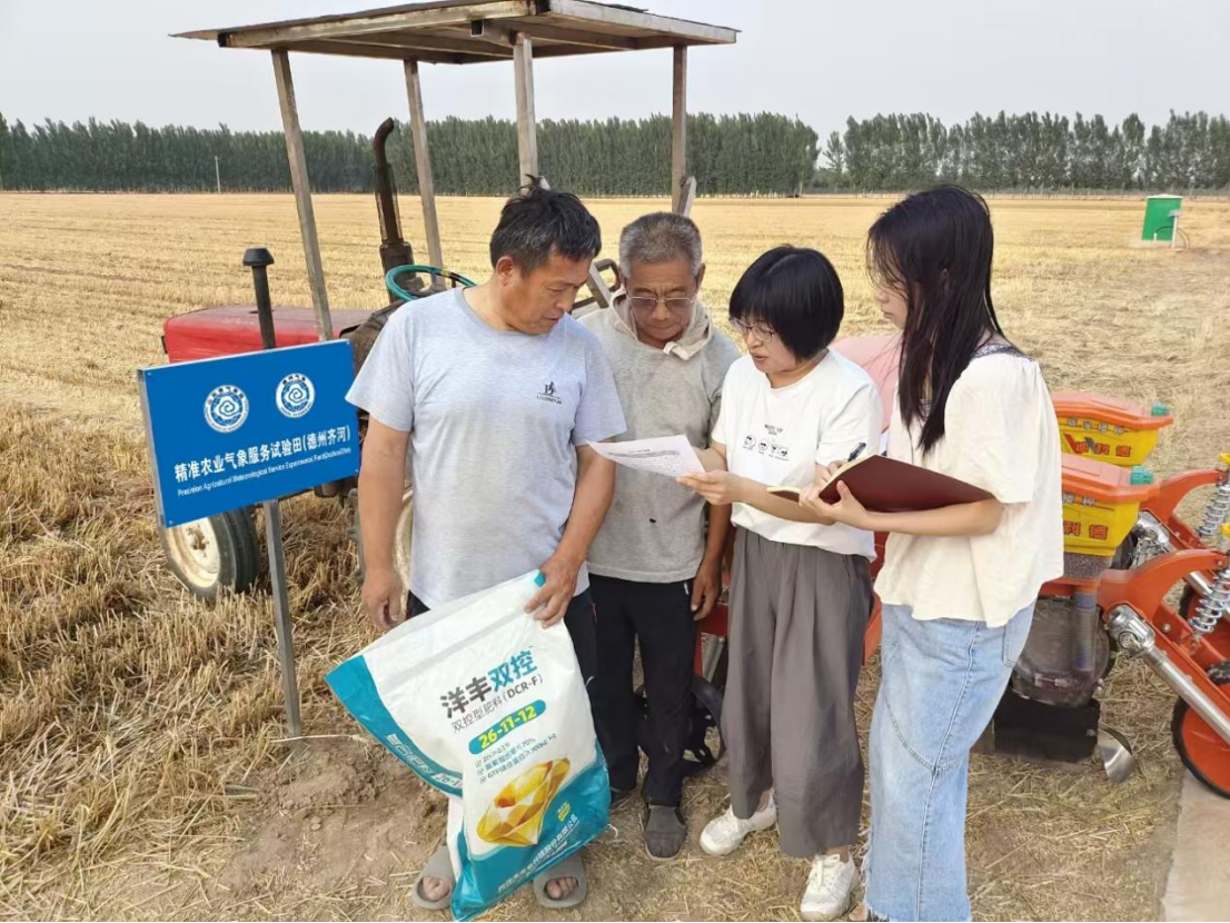 2025年6月17日德州齐河农业气象人员到田间地头为大户讲解天气信息,开展夏玉米播种精准气象服务