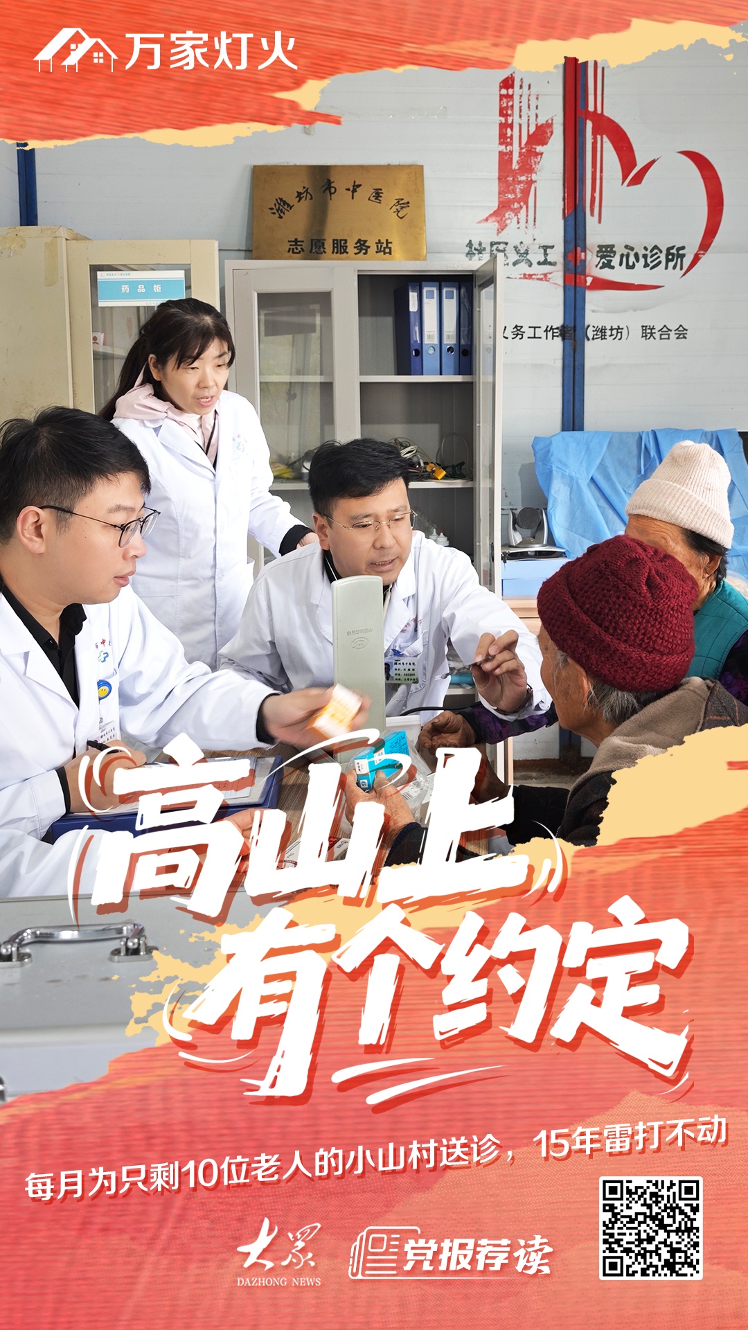 以前村里没有诊所,村民都得到山下的庙子镇杨集社区买药。2011年,潍坊春雨义工了解到这个情况后,在潍坊团市委等部门支持下,在村里建起了“高山爱心诊所”。义工们和老人们约定:每个月的最后一周,不管刮风下雨,都会带着医生护士上山送诊。这个约定,一守就是15年。