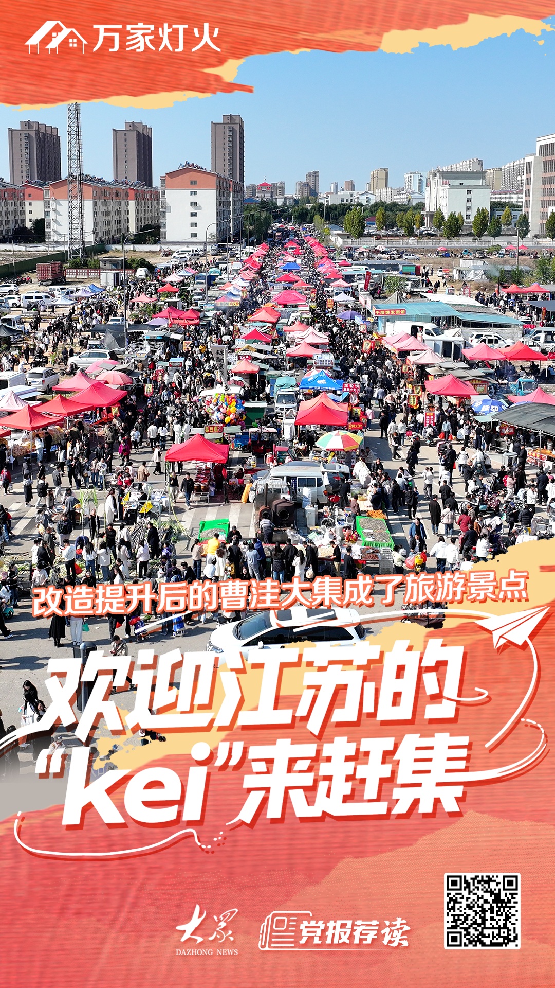 临沭县位于鲁南,与江苏接壤。今年9月份,曹洼大集第一次迎来旅游团时,当地人吃了一惊——农村大集咋成了景点?不少人拿起手机发布短视频,欢迎江苏的“kei”(方言,“客”的发音)来赶集。游客越来越多,短视频平台上有关曹洼大集的作品也多了起来。在抖音平台,曹洼大集相关话题视频播放量已近2亿次。