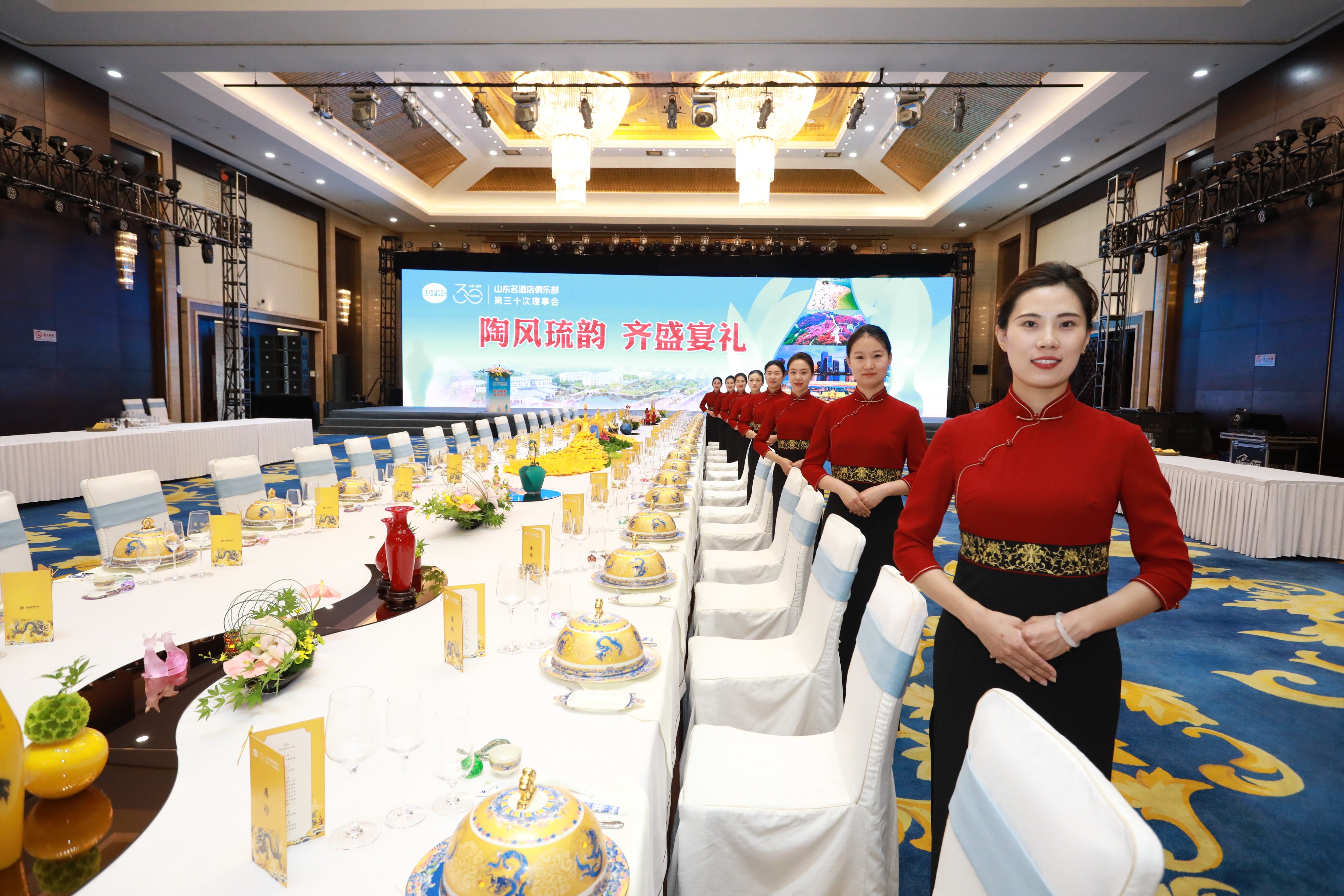 在空间布置上,宾馆增设陶瓷琉璃展台、“齐文化长廊”等;改造提升齐盛音乐花园餐厅,打造升级版齐盛烧烤,将传统礼仪、齐文化等融入接待服务;通过礼仪培训让员工成为齐文化“移动讲解员”,彰显窗口示范作用。
