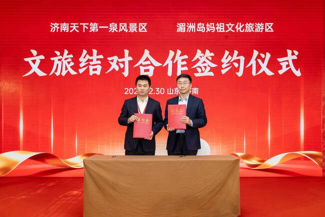 活动现场,多项文旅合作协议成功签署,推动两地文旅协作向纵深迈进。莆田市文化和旅游局与济南市文化和旅游局签订文旅战略合作框架协议,双方将在文化交流、旅游市场拓展、产业协作等领域开展全方位合作,共享旅游服务标准,互推优质旅游资源。湄洲岛妈祖文化旅游区与济南天下第一泉景区达成文旅结对合作,双方将加强重大文化活动联动,深化文旅融合协作,联合打造“泉韵齐鲁·妈祖祈福”跨区域主题线路,合作开发具有双重文化辨识度的特色文创产品、旅游纪念品,推动妈祖文化与泉文化深度交融。