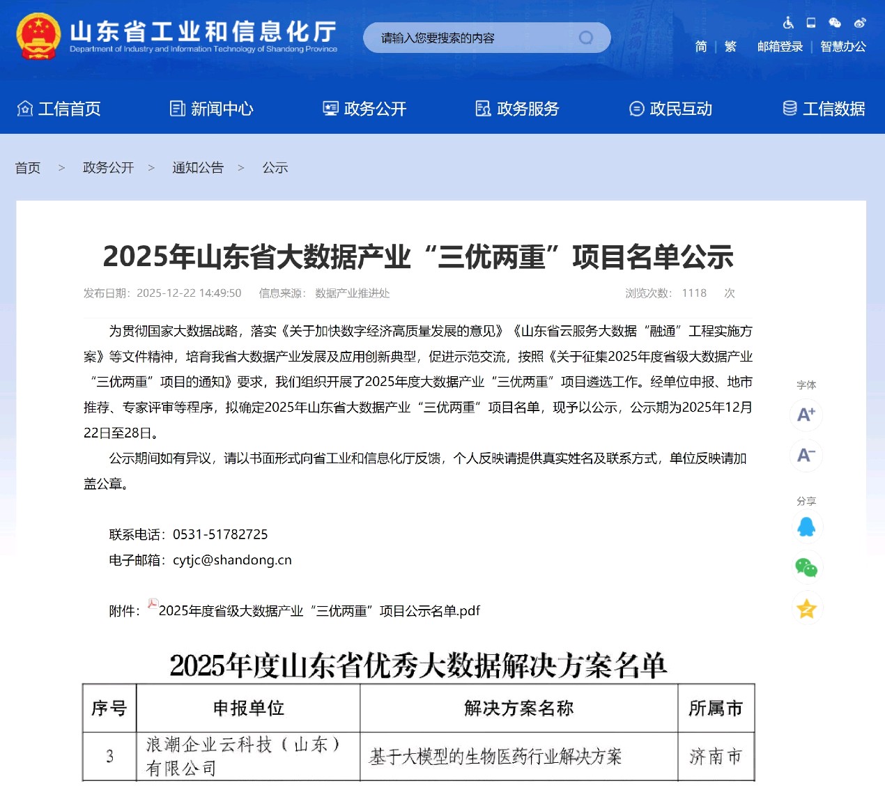 近日,山东省工业和信息化厅公示了2025年山东省大数据产业“三优两重”项目名单。浪潮企业云提报的“基于大模型的生物医药行业解决方案”成功入选2025年度山东省优秀大数据解决方案名单。