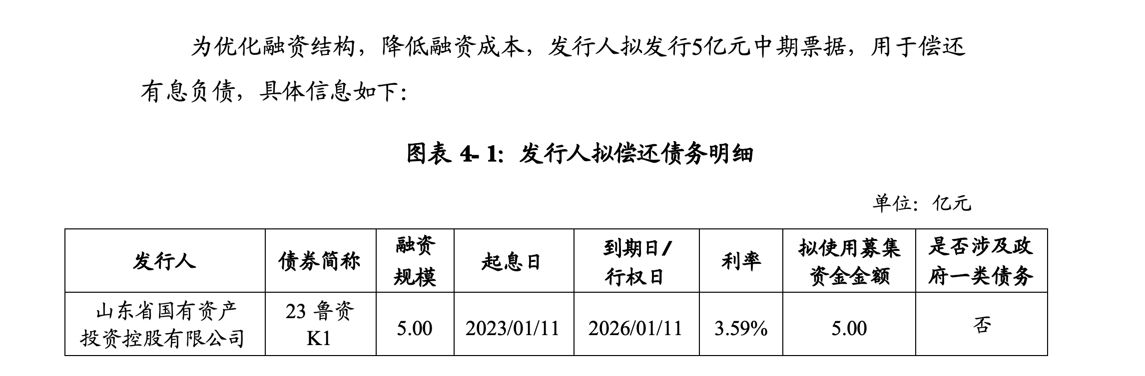 募集说明书提出,“为优化融资结构,降低融资成本,发行人拟发行5亿元中期票据,用于偿还有息负债。”