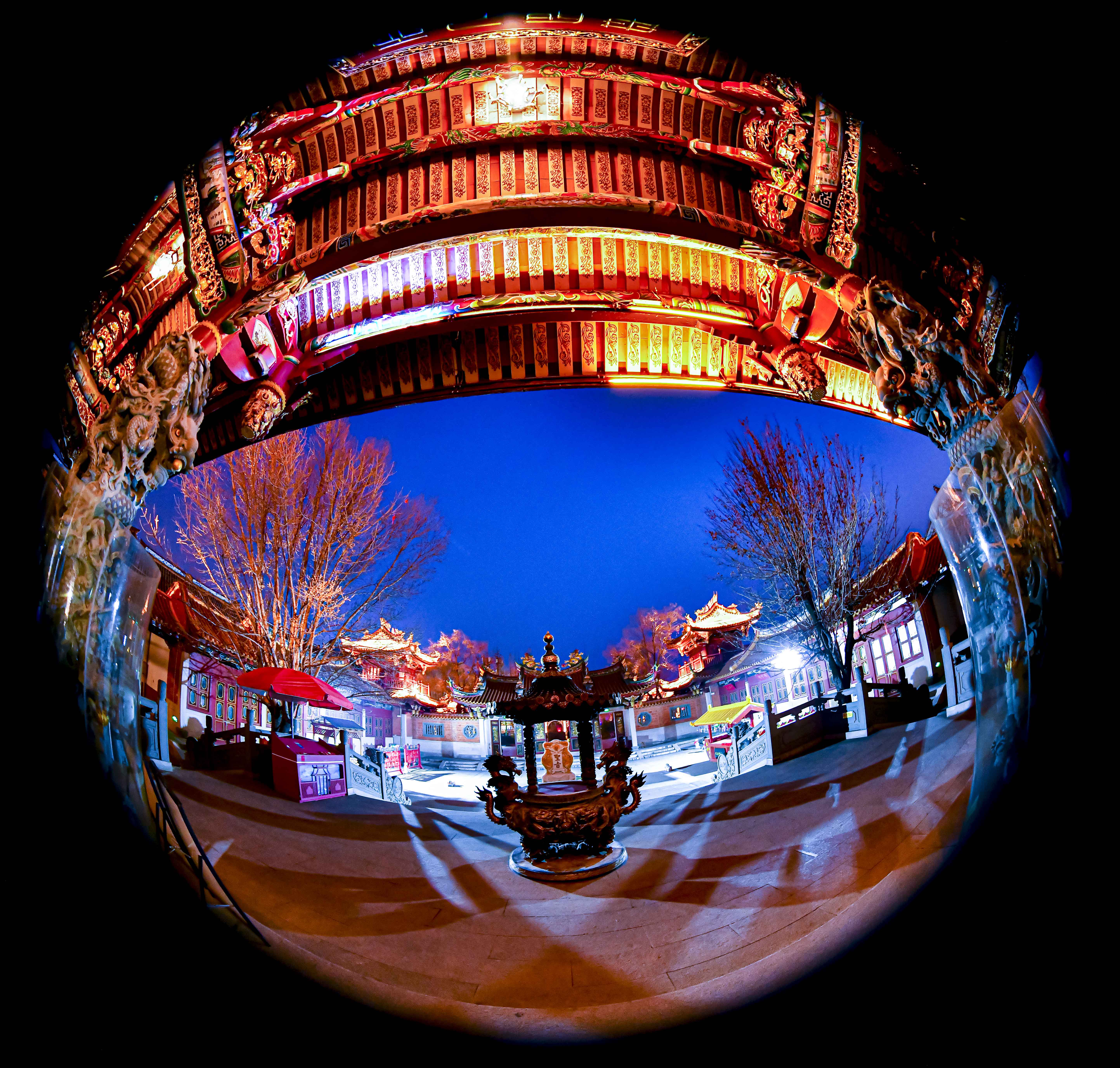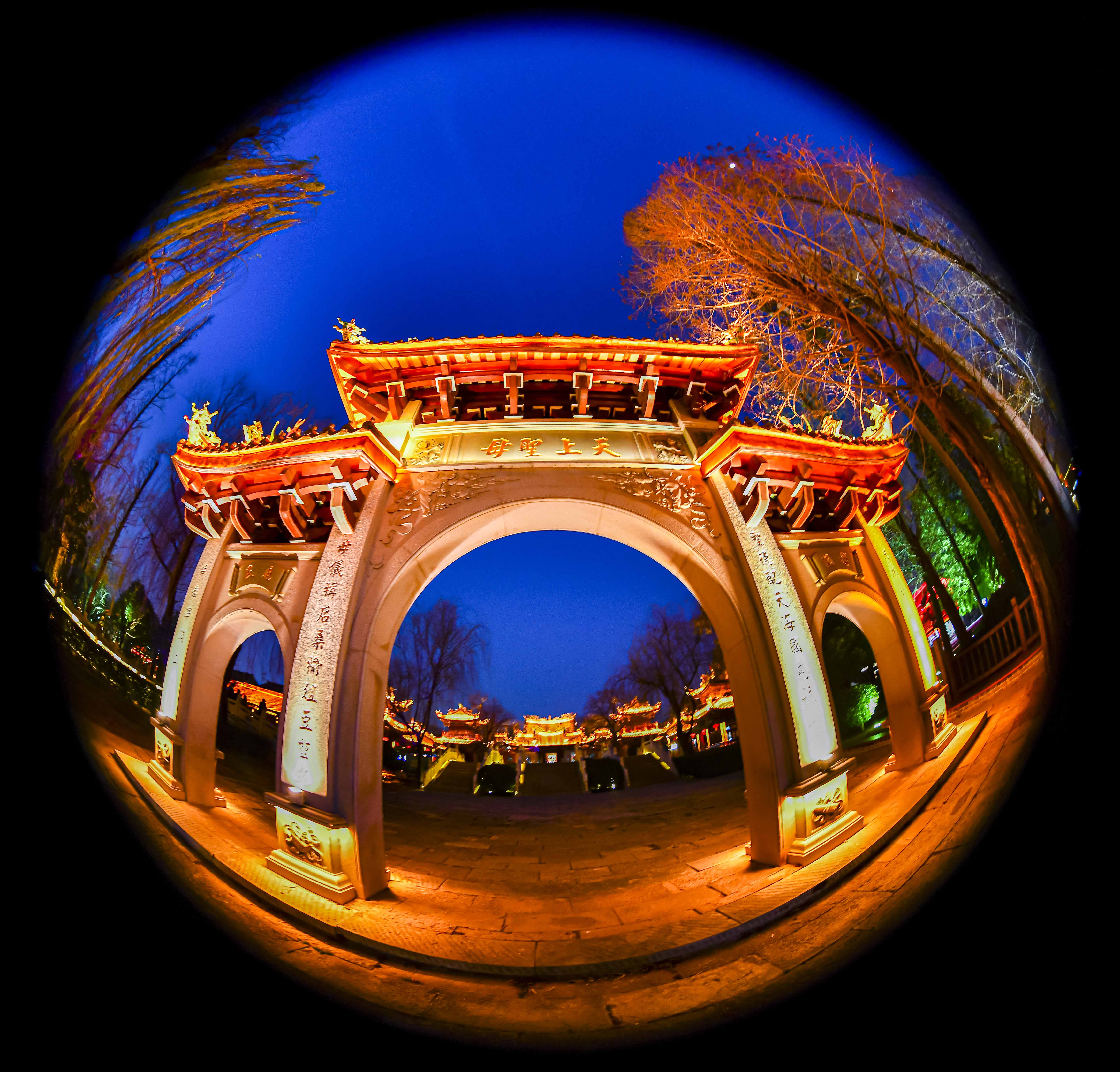 冬至时节,夜幕下的台儿庄天后宫,美在视觉的震撼,美在古今的交融,更美在它以最璀璨温暖的方式,承载并照亮了一段厚重历史。 (台儿庄区融媒体中心高启华拍摄)