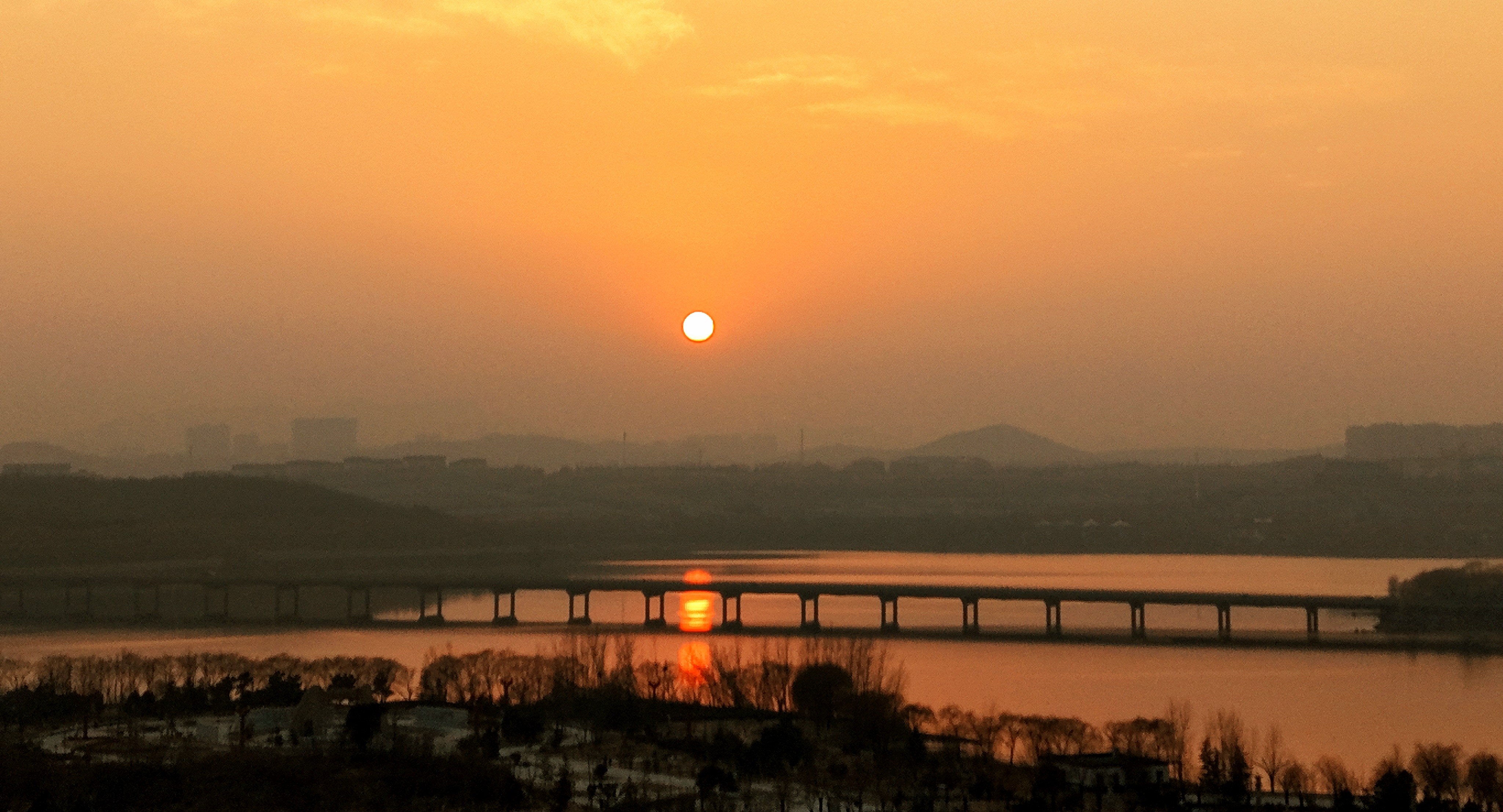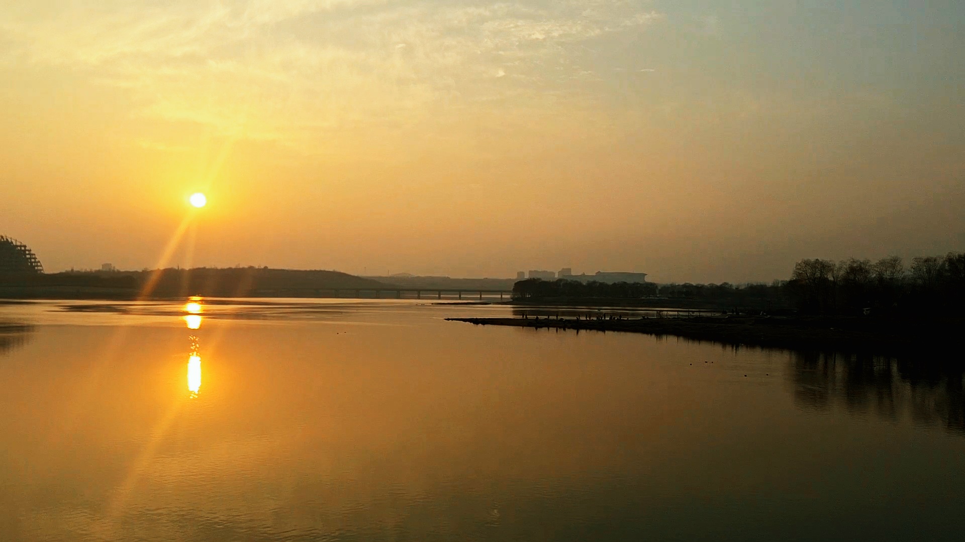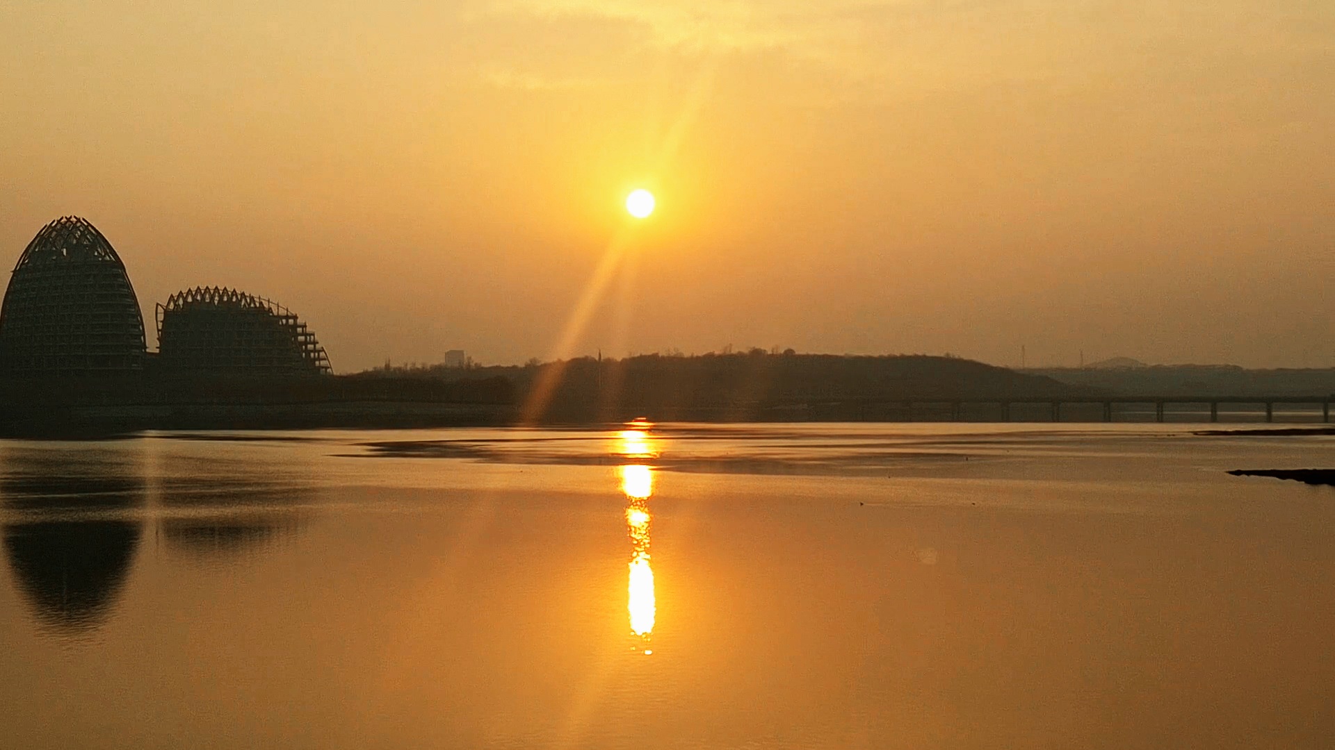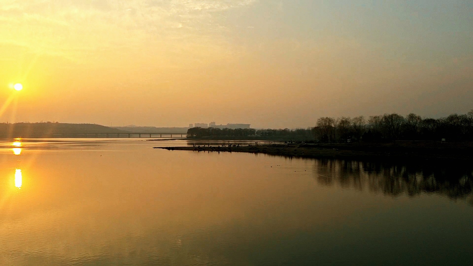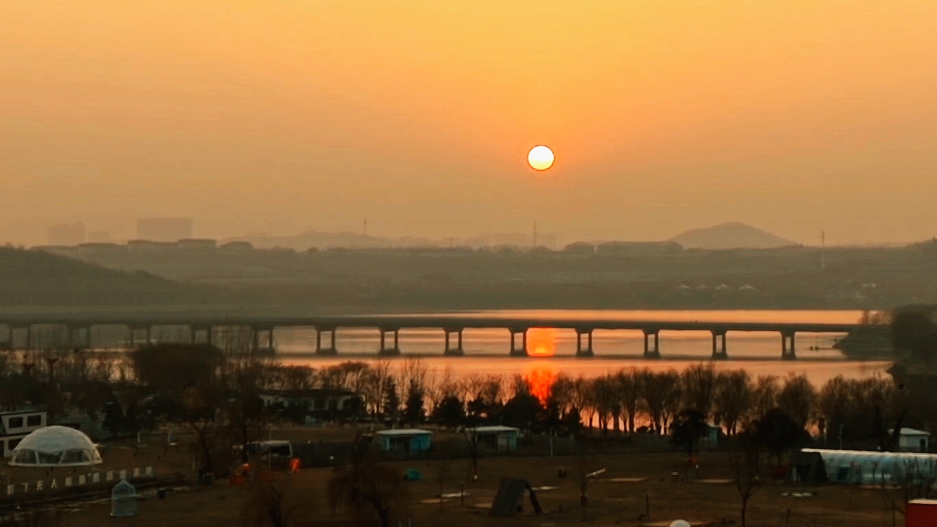 寒冬岁末,泰安天平湖畔以一场绚烂的晚霞景观,为即将落幕的2025年献上宁静而壮丽的告别礼。夕阳西沉,天际被晕染成一片温暖的橘红,如同熔金倾泻,为辽阔的湖面镀上流动的橙黄与绯红。波光粼粼的湖水倒映着斑斓云霞与远处泰山的轮廓,构成一幅“山水一色”的立体画卷。(济南车务段杜希毓拍摄)