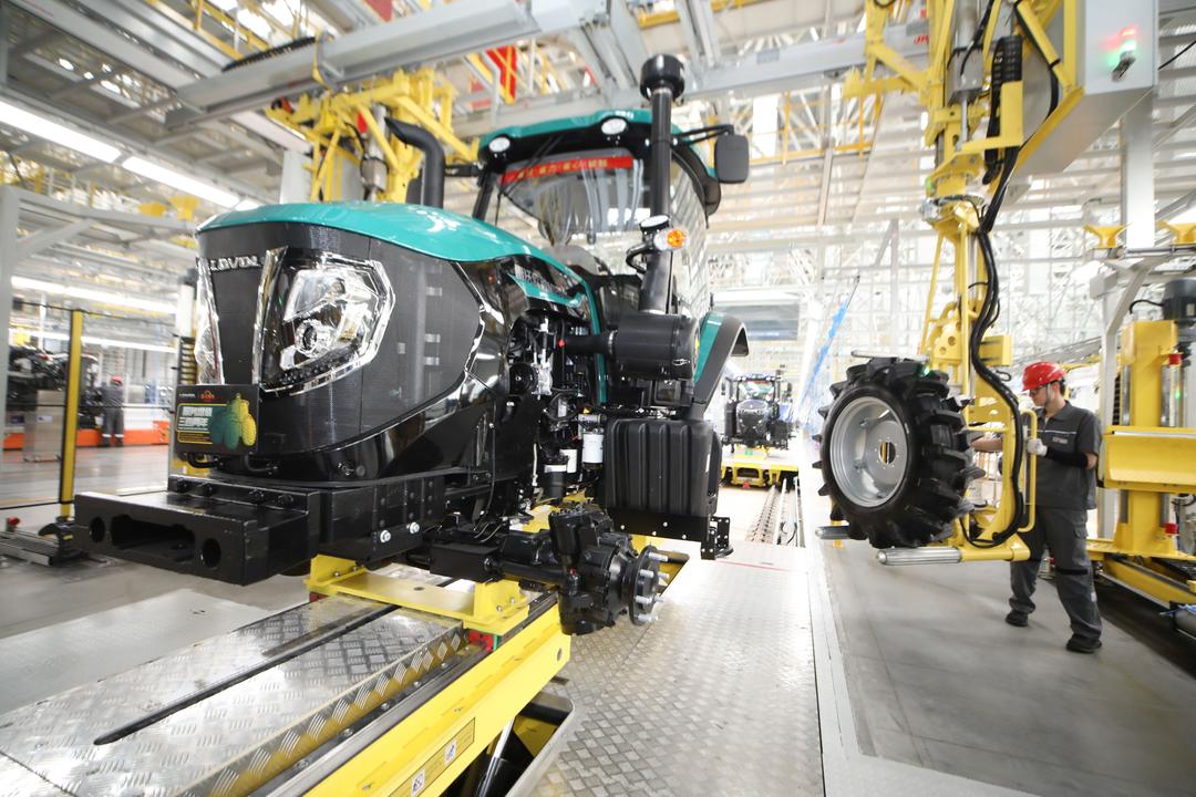 2025年5月18日,总投资30亿元的潍柴雷沃大马力拖拉机智慧工厂正式投产运行,这座中国农机工业史上投资规模最大、技术水平最高的现代化工厂,成为行业“智造”转型的标杆。走进智慧工厂,工业互联网、大数据、人工智能等新技术的应用无处不在:壳体加工车间里,机器人精准完成切削、焊接等工序;总装线上,AGV 小车自动配送零部件;全流程数字化管理系统实现从原材料入库到整机下线的质量追溯,关键工序自动化率超 70%。世界级的工艺装备与数字化管理体系,确保每一台农机的可靠性、稳定性达到国际一流水准,让“中国智造”的品质底气十足。