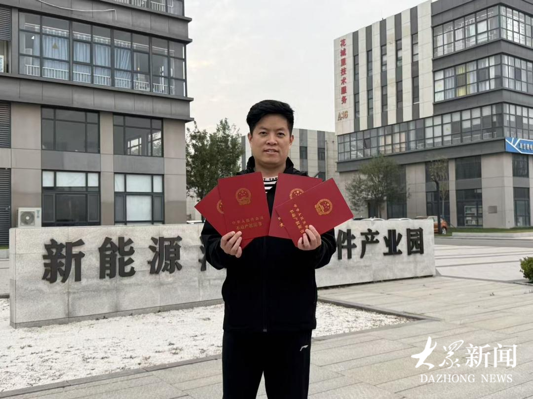 东昌府区新能源汽车零部件产业园有关负责人展示为产业园各个厂房办的小证。
