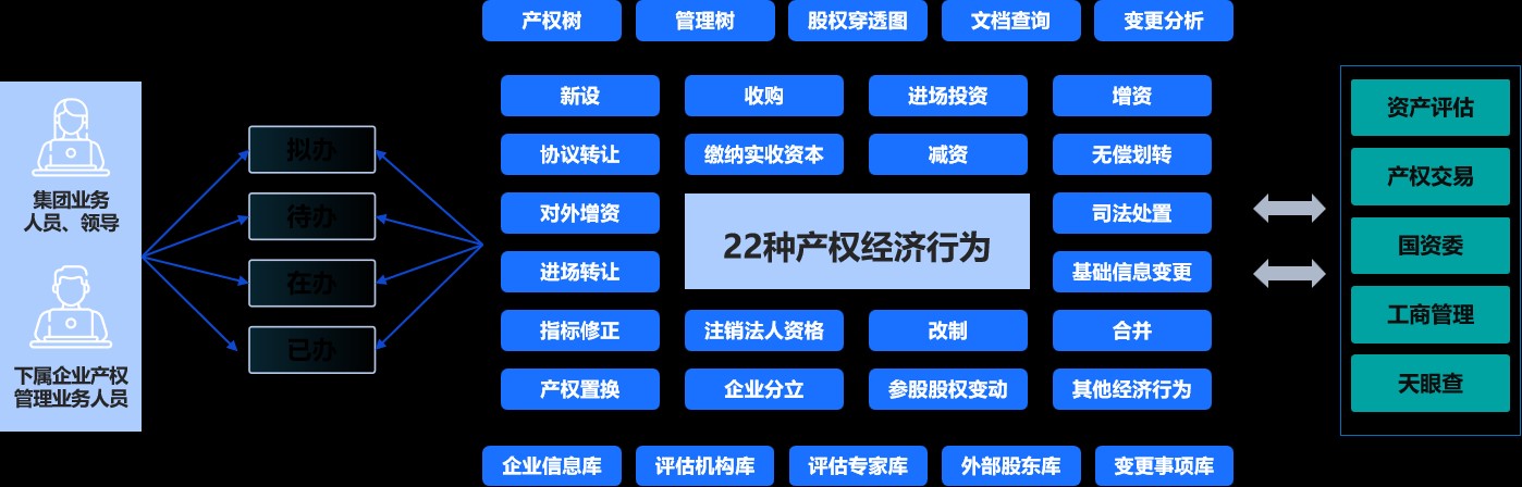 浪潮海岳投资管理8.0全面深化产权管理系统功能,新增新设、收购、协议转让等22种产权经济行为,强化过程管理,实现产权变动由结果记录向精细管理转变。全面对接国资委产权管理系统,业务数据一键报送,构建起高效便捷的数据交互通道。资产评估对接大模型,融入评估报告智能录入、评估报告智能审核、企业评价等功能,提升报告准确性与合规性,筑牢国有资产安全防线。