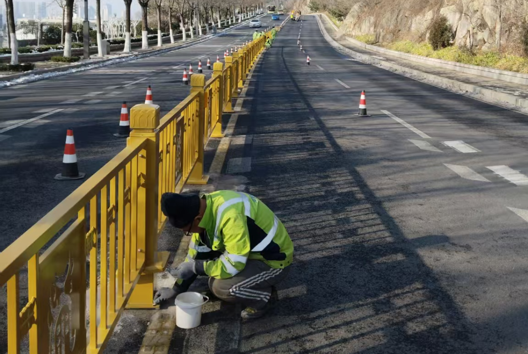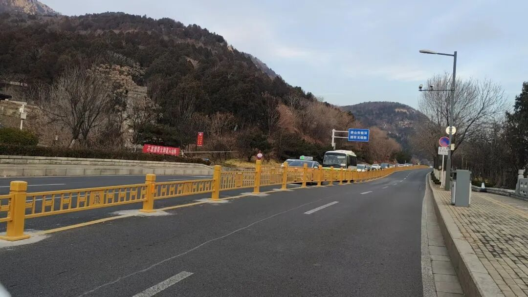接环山路天外村票证处路口,西行原有护栏至望岳东路路口,新增中央隔离护栏。
