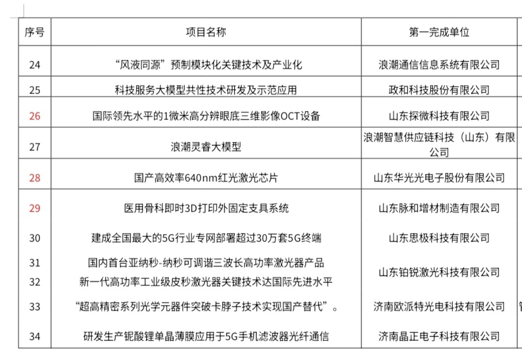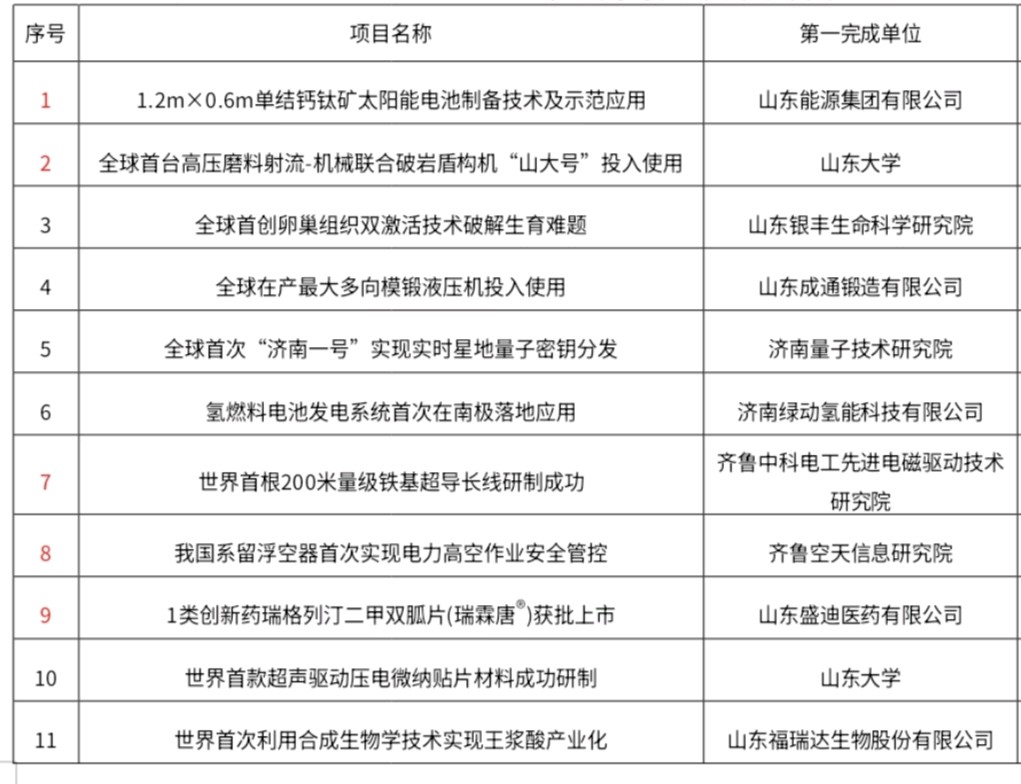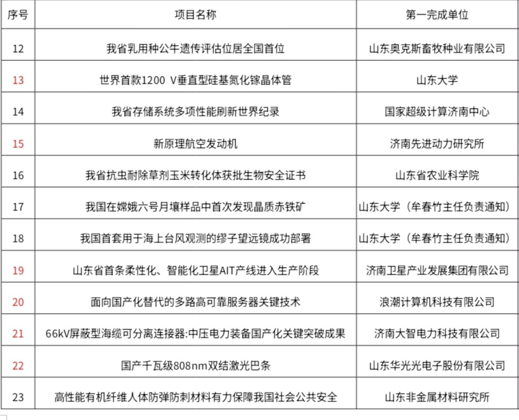 其中,山东能源集团的“1.2m×0.6m单结钙钛矿太阳能电池制备技术及示范应用”等18项入选“山东好成果专报”的济南好成果榜单和浪潮计算机的“面向国产化替代的多路高可靠服务器关键技术”等16项入选“济南好成果”榜单。