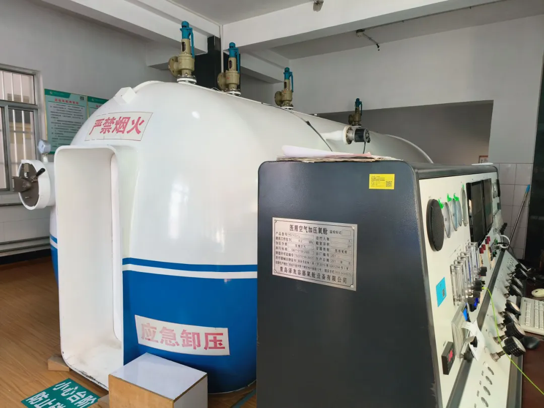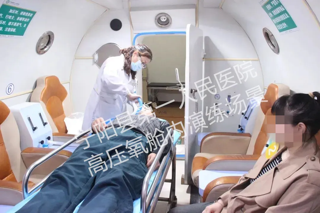 宁阳县一院氧疗科的高压氧舱,采用空气加压戴面罩吸氧,一次可同时治疗6人,舱内配备监控、对讲等设备,采用自动化操作,能自动控制加减压、供排氧的速度,自动稳压,治疗安全舒适。