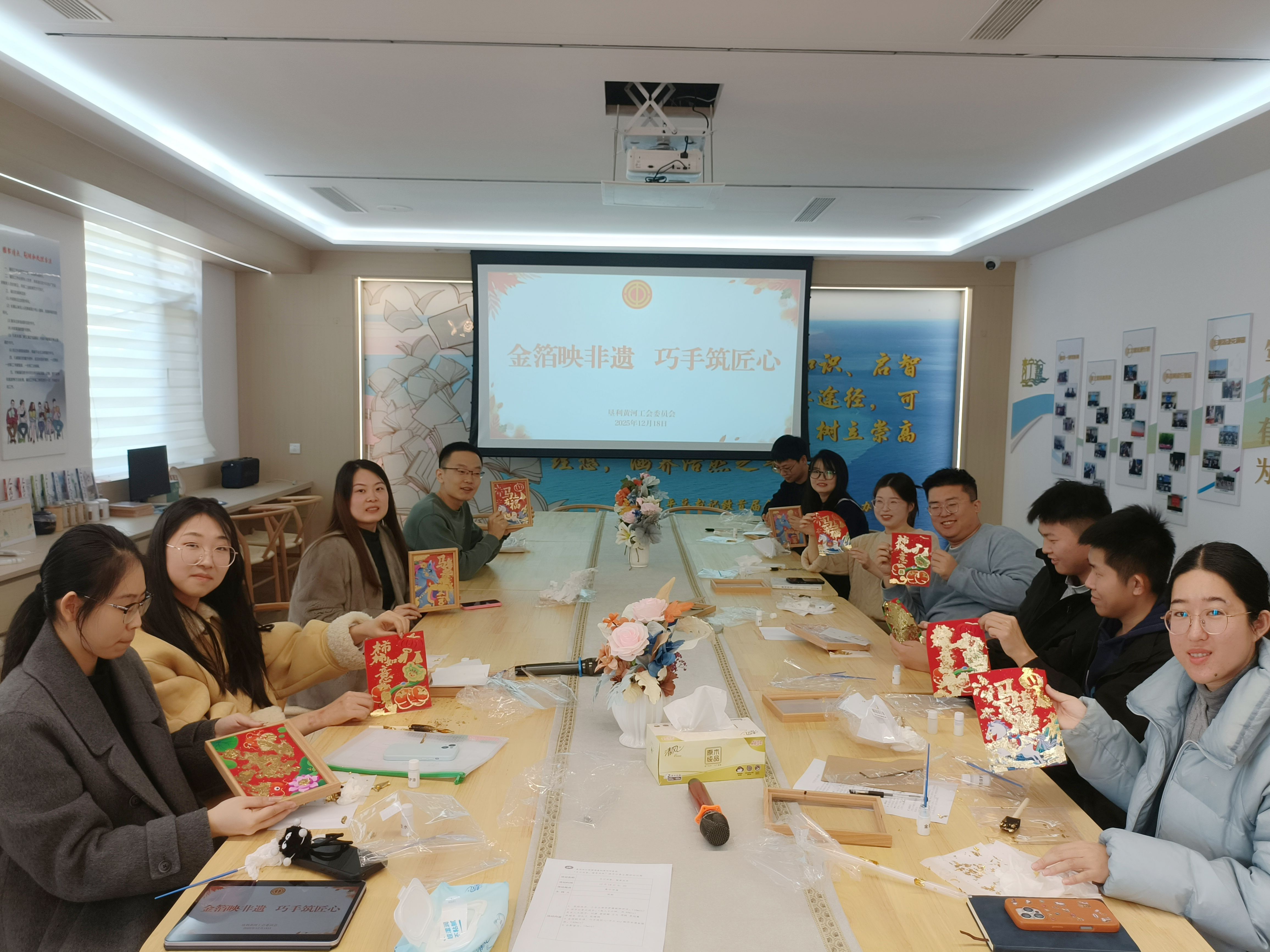 随后,干部职工一同制作了非遗金箔画,在沉浸式的体验中绘制自己心中的颜色,一场男女职工“手艺大比拼”热闹展开,大家纷纷表示男职工们也十分心灵手巧,值得点赞。