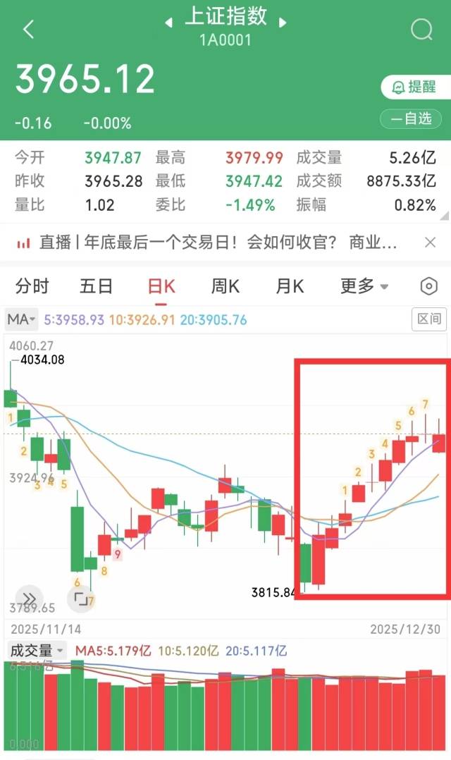 12月30日是A股倒数第二个交易日,沪指收出罕见的“十连阳”,再度刷新历史连涨纪录,凸显了市场信心。