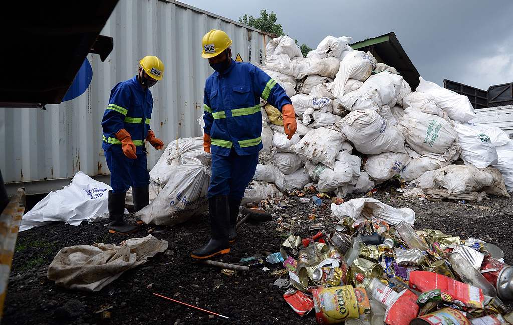 工人们将从珠峰上回收的垃圾进行分类(资料图)