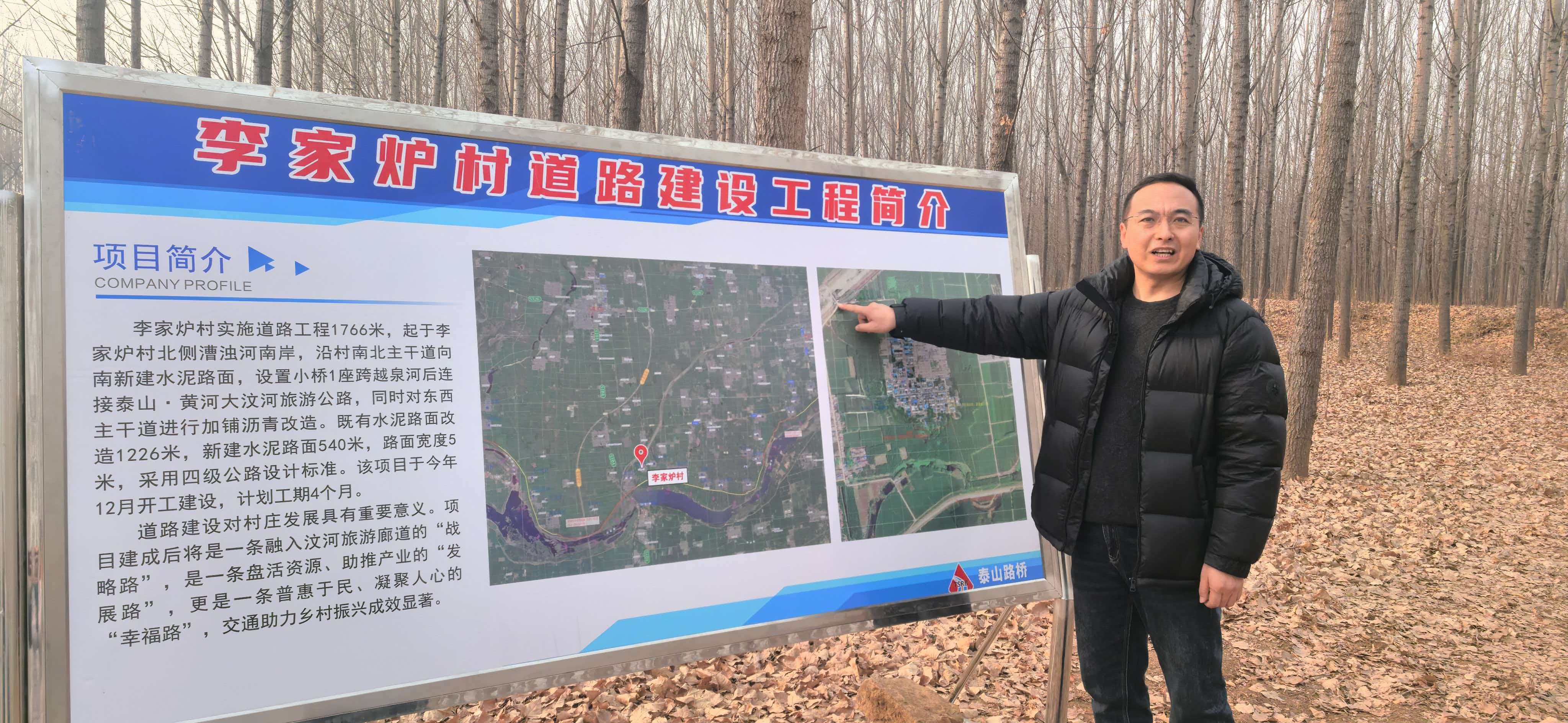这一切,离不开泰安市交通运输局派驻该村的“第一书记”娄猛的积极推动。2023年10月,娄猛受组织委派来到李家炉村。作为一名经验丰富的“老交通”,他迅速捕捉到道路向南延伸的战略价值:村庄北临漕浊河,南靠泉河,仅一河之隔便是即将建成的生态廊道。然而,村南区域长期被坍塌的宅基地和荒芜的杨树林占据,道路不通导致土地闲置,村民南行也需绕远路。