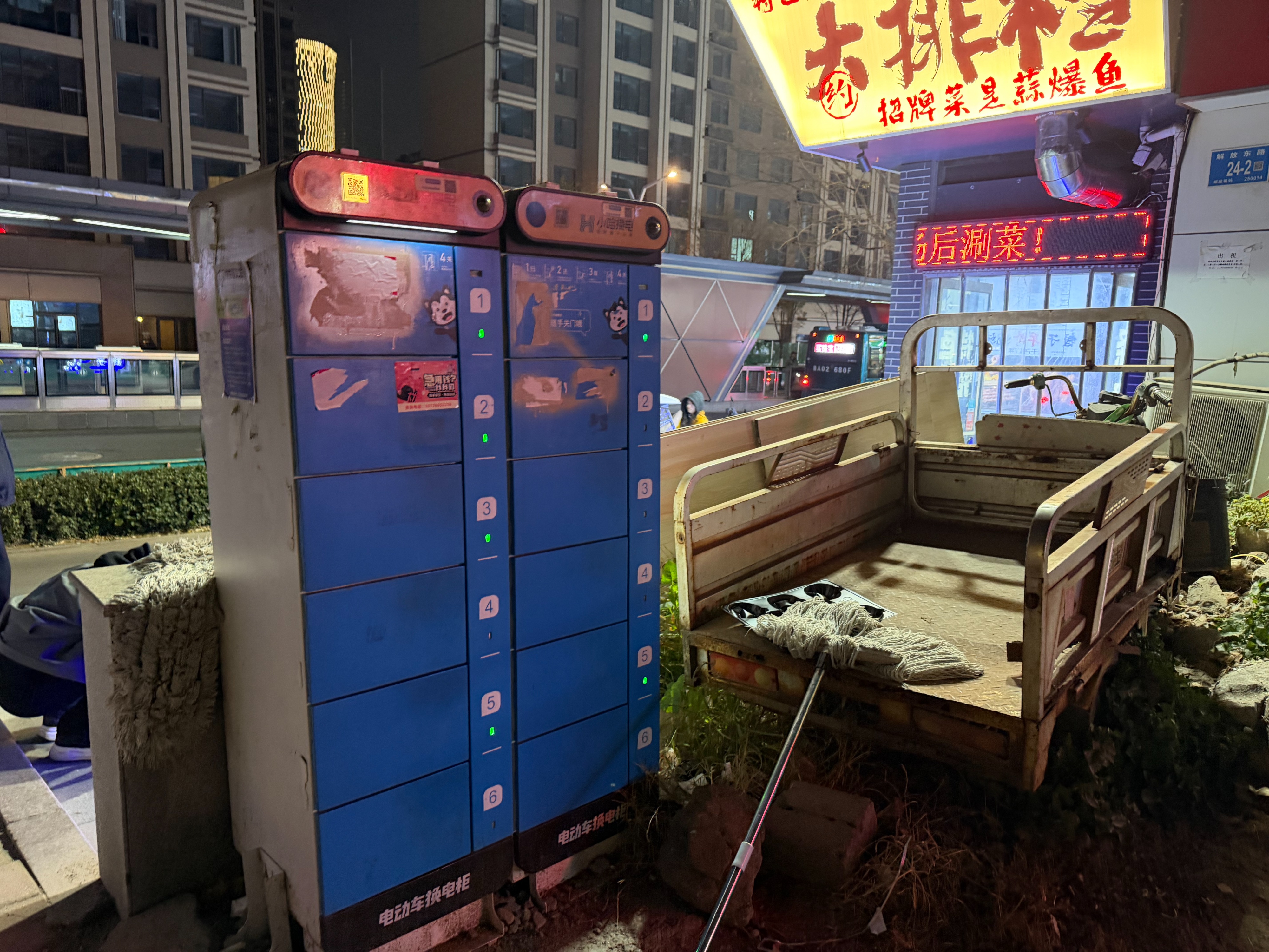 记者在济南走访发现,有些换电柜的安装位置未预留消防通道,部分柜体甚至紧邻商铺的易燃杂物堆,也未配备任何消防器材。