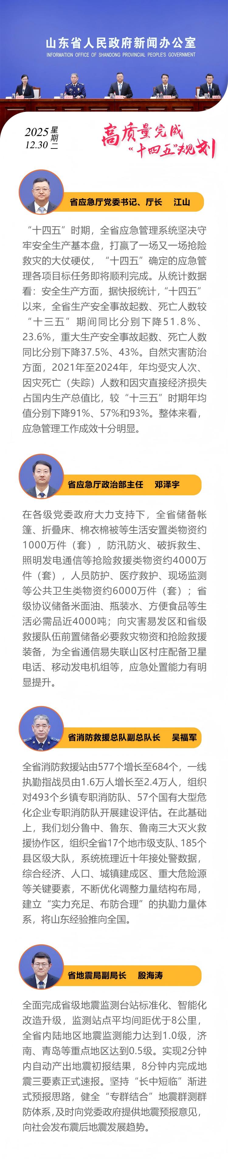 12月30日下午,山东省人民政府新闻办公室举行“高质量完成‘十四五’规划”系列主题新闻发布会,邀请山东省应急管理厅主要负责同志等介绍“十四五”时期山东推进现代应急管理体系建设情况。(大众新闻记者杨烨莹李亚平策划陈巨慧)