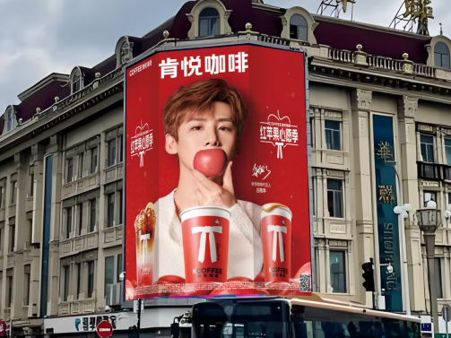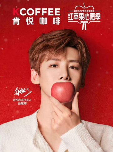 与代言人白敬亭的合作就是一大范例。2025年年初,肯悦咖啡就前瞻性地与白敬亭主演的青春剧《难哄》合作,《难哄》大火,肯悦咖啡也随之收获了一批粉丝;圣诞节期间,白敬亭手捧肯悦经典红苹果热美式的巨幅广告形象出现在许多城市的经典地标,偶像与经典产品的形象也一同深入人心。