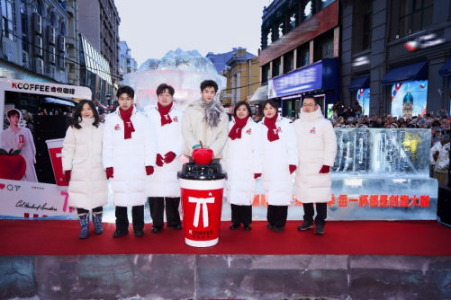 2025年12月29日,肯悦咖啡在哈尔滨中央大街举办了一场别开生面的“红苹果心愿季”冰雕点灯仪式。肯悦咖啡的巨型红色咖啡杯造型冰雕搭配“水晶”苹果,十分吸睛。品牌代言人白敬亭也亲临现场,与众多市民和咖啡爱好者共同点亮了象征节日季的灯光装置——当按下肯悦咖啡杯上互动按钮,整座冰雕怦然亮起,呈现红苹果的明媚色彩,为冰城冬夜增添暖意与活力,迎接新春到来。