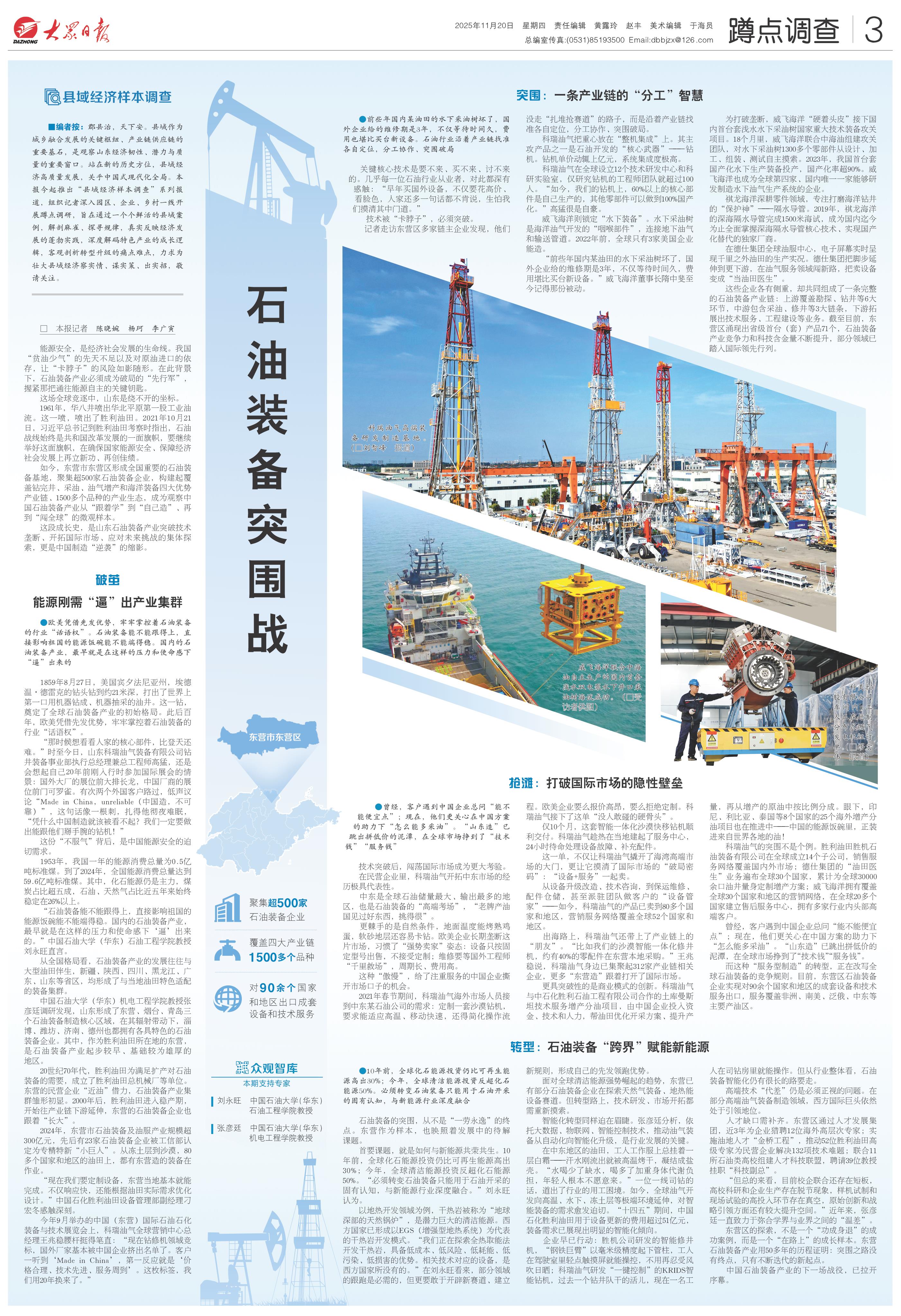 岁末回望,齐鲁大地的脉动深沉而有力。自2025年8月12日启程,大众日报“蹲点调查”栏目记者的足迹,从黄河入海口的盐碱荒滩,延伸至县域工厂的轰鸣车间;从深海钻井平台的惊涛之侧,探寻到一元剧场里的袅袅乡音。14次沉入一线的抵达,丈量出山东高质量发展的韧性与厚度。