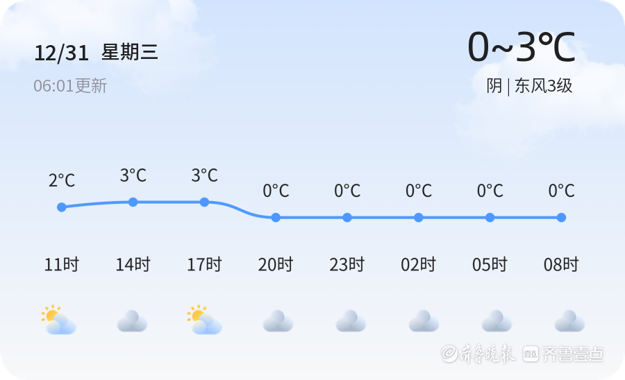 今天是公历12月31日,农历十一月十二,星期三。枣庄市今日天气阴沉,气温较低,全市范围内的气温在0℃到3℃之间波动,东风3级,空气湿度为60%,PM2.5指数为69,空气质量良好。目前实时气温为1.7℃,风力较小,整体天气条件较为平稳。