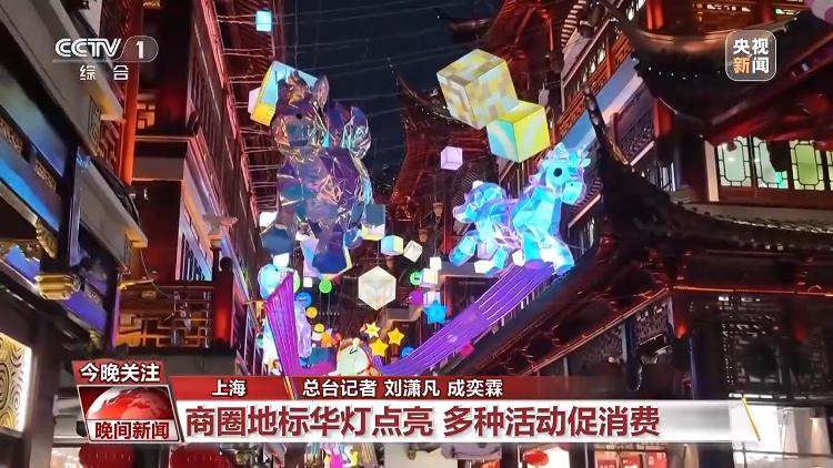 在上海,各大地标商圈纷纷换上节日装饰,用华灯装点出新年的节日氛围。南京路等商圈为了迎接元旦假期,发放亿元消费券,并推出了商场延时营业、整点促销等优惠活动。上海传统地标豫园,一年一度的新春灯会已进入火热搭建阶段。