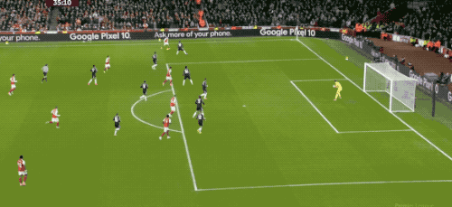第48分钟,阿森纳球员萨卡开出角球,加布里埃尔在马丁内斯的腋下将球打进,这也是阿森纳本场获得的第一个角球。阿森纳1-0阿斯顿维拉。