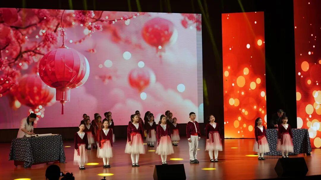 本次联欢会以“锦绣华年 共赴新程”为主题,整场演出节目衔接自然、气氛热烈,生动展现了开发区师生团结向上、喜迎新年的精神风貌。开场舞《欢欢喜喜过大年》以热闹喜庆的节奏带动全场气氛,朗诵《古诗里的新年》与民乐合奏《幸福年》传递出开发区师生对传统文化底蕴的深情传承与对美好生活的真挚向往,舞蹈《蹴鞠仕女图》与武术《破阵乐》展现了少年儿童刚柔并济、昂扬自信的精神风采,现代舞《winplash》和街舞《Show time》则彰显出青春活力与时代节奏的激情碰撞,歌伴舞《春风十万里》与合唱《世界赠予我的》唱响了开发区教育人同心筑梦、携手向前的坚定信念,联欢会歌曲《为今天喝彩》中落下帷幕。