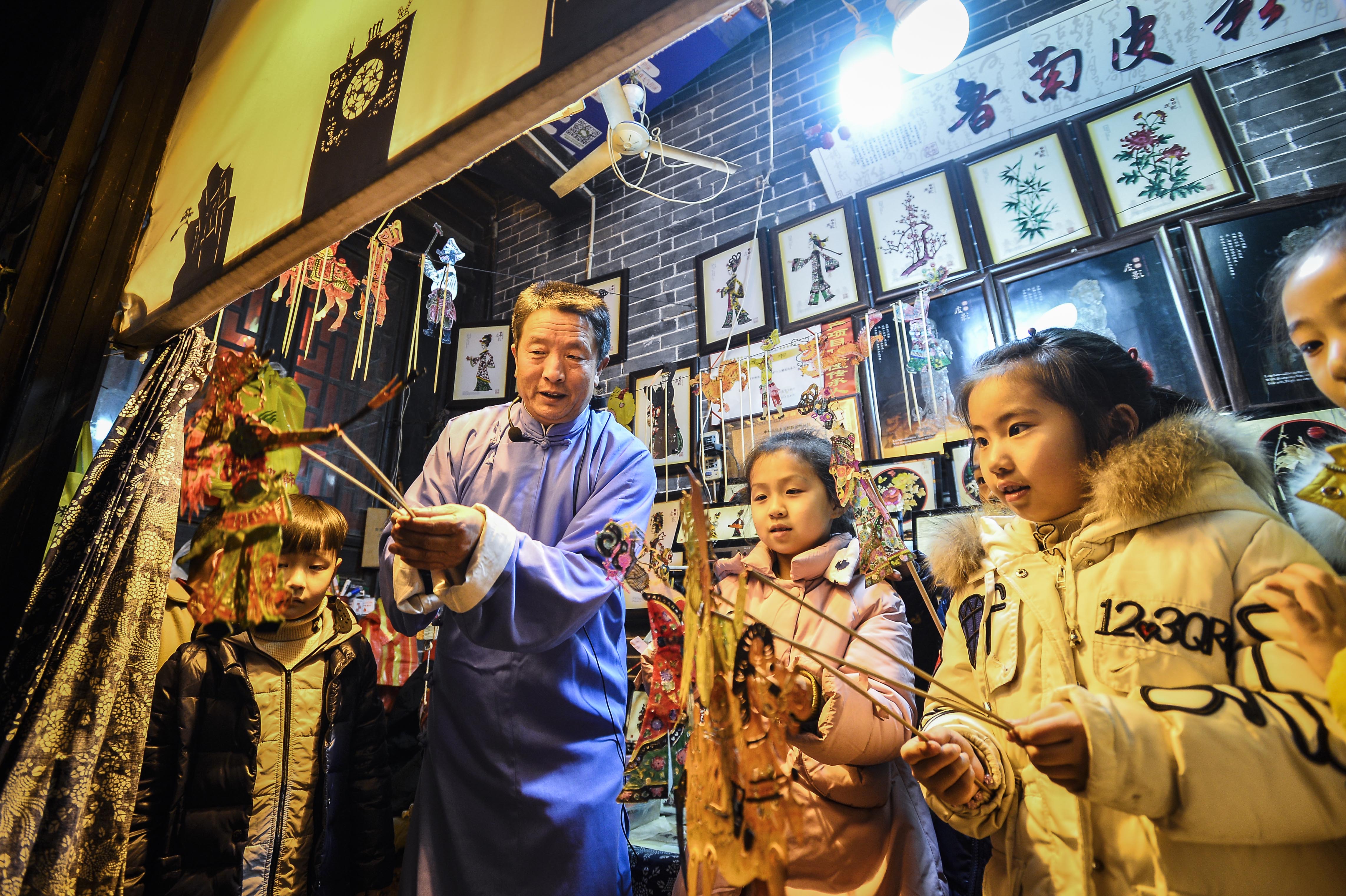 台儿庄古城全天百场免费演艺,为游客呈现立体化的文化体验。白天,大型实景演出《乾隆巡游台儿庄》引领游客沉浸于历史场景,具有地方特色的变脸、柳琴戏、鲁南皮影戏等非遗展演轮番登场。入夜后,全国非遗演出“火龙钢花”绚烂绽放,东门城墙光影展演、船形街与市楼光影秀等,通过灯光、音乐与微演艺的巧妙融合,将古代运河商埠的繁华、近代台儿庄大战的壮烈、当代城市复兴的繁荣,如画卷般生动呈现。