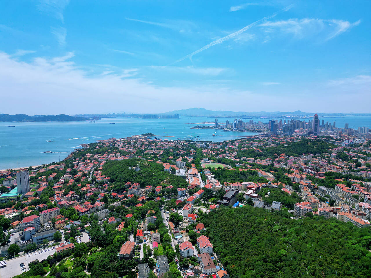 青岛东岸前海湾区东起崂山区崂山头,西至市南区团岛湾,岸线长79.01公里,海域面积390.34平方公里,山、海、城、湾、岛五大元素交相辉映,串联起浮山湾、汇泉湾等12个海湾与5处天然优质沙滩,以“岬湾相间、沙滩连缀”的地理格局,勾勒出“红瓦绿树、碧海蓝天”的独特海岸风貌,成为青岛最具辨识度的生态标识。