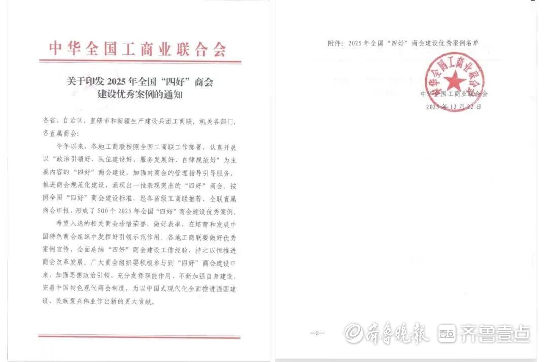 山东省民营企业家协会入选2025全国“四好”商会建设优秀案例