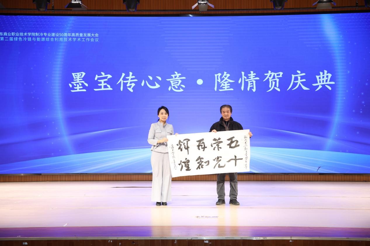 在“赠墨寄情”环节,退休教师朱崇昌老师向制冷专业赠送书法作品《五十荣光,再创辉煌》,表达对制冷专业建设五十周年的祝贺。