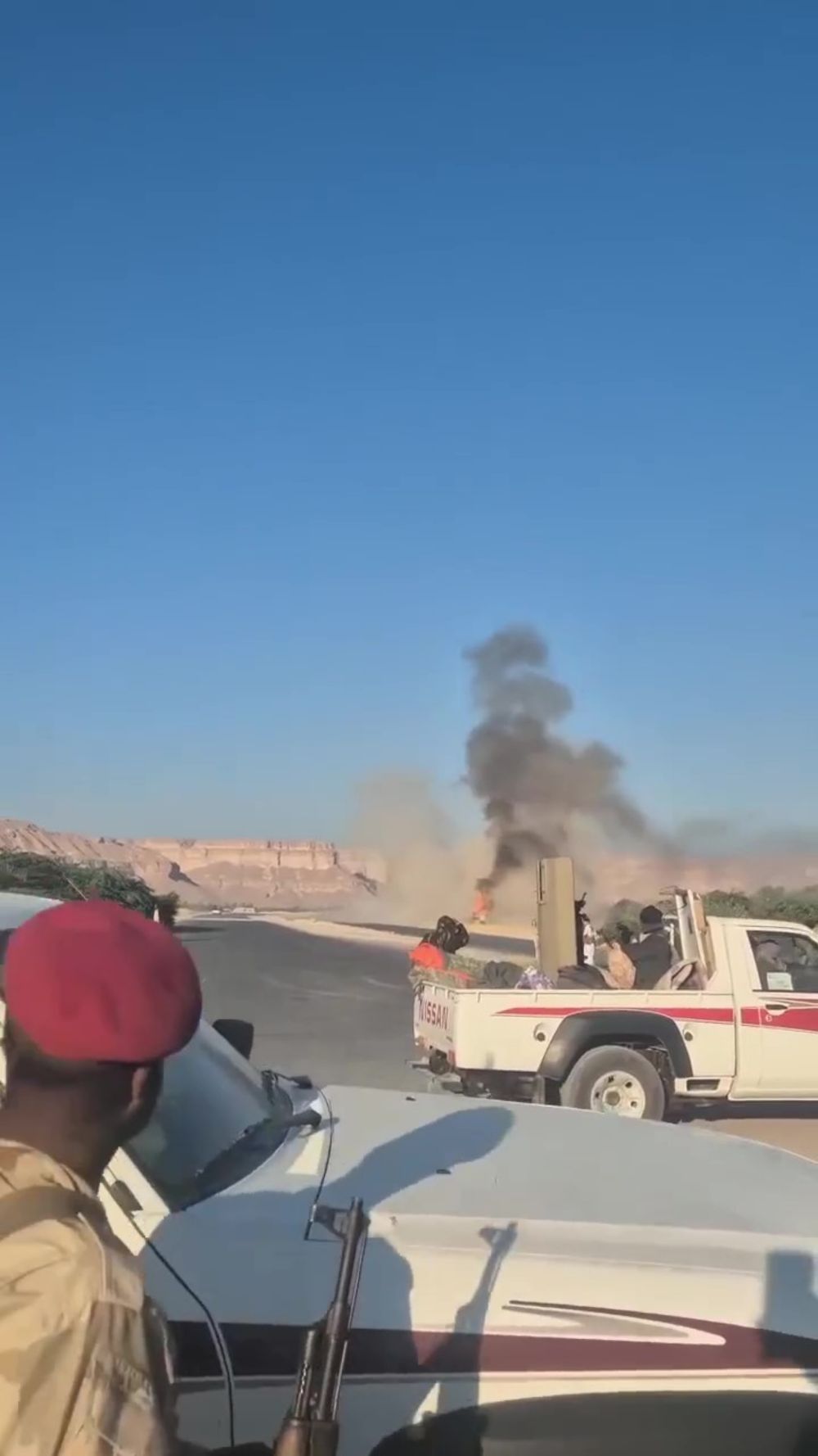这张南方过渡委员会提供的视频截图显示,12月26日,在也门哈德拉毛省,南方过渡委员会的武装人员在空袭现场附近。新华社发 90天紧急状态 海陆空封锁