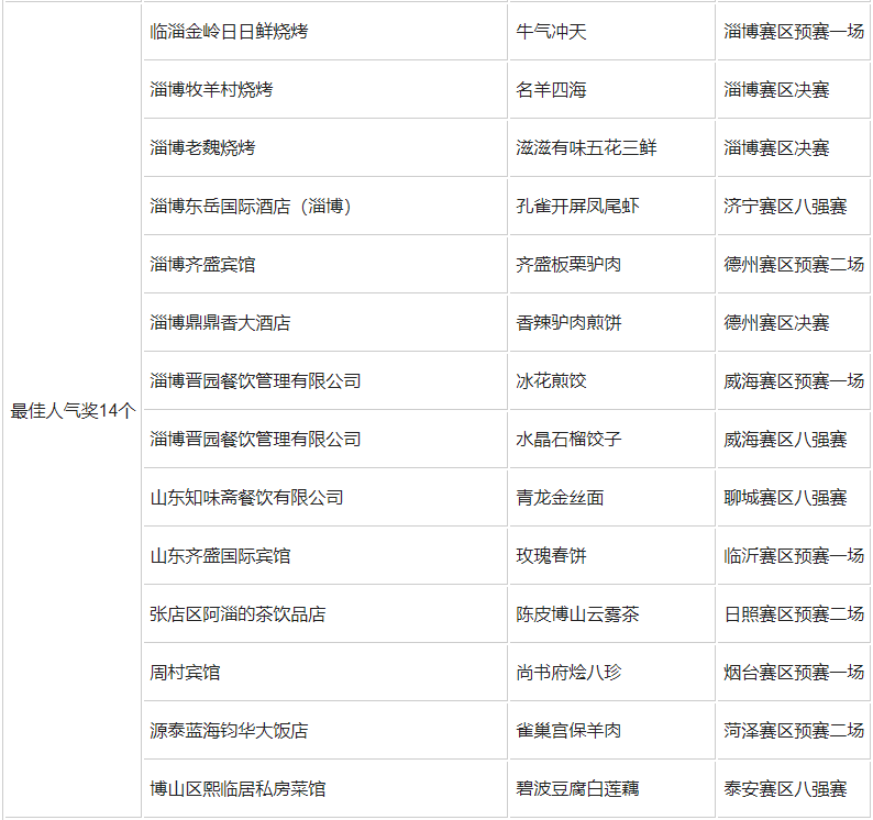 淄博荣获“好客山东·美食争霸赛”亚军