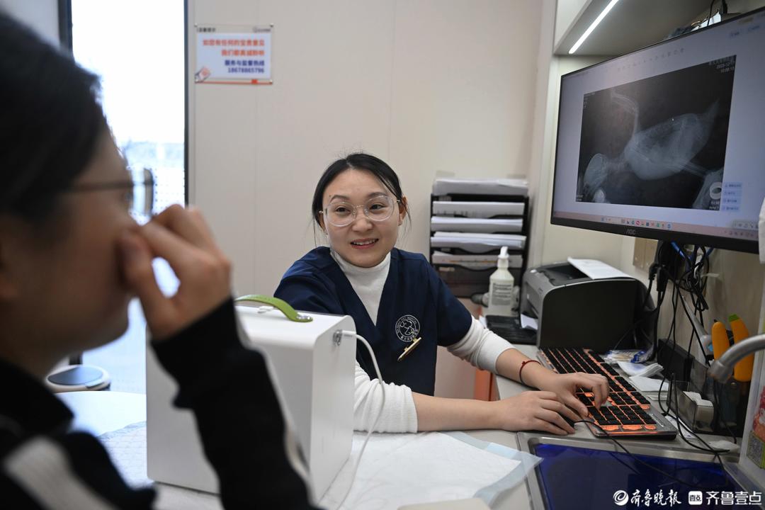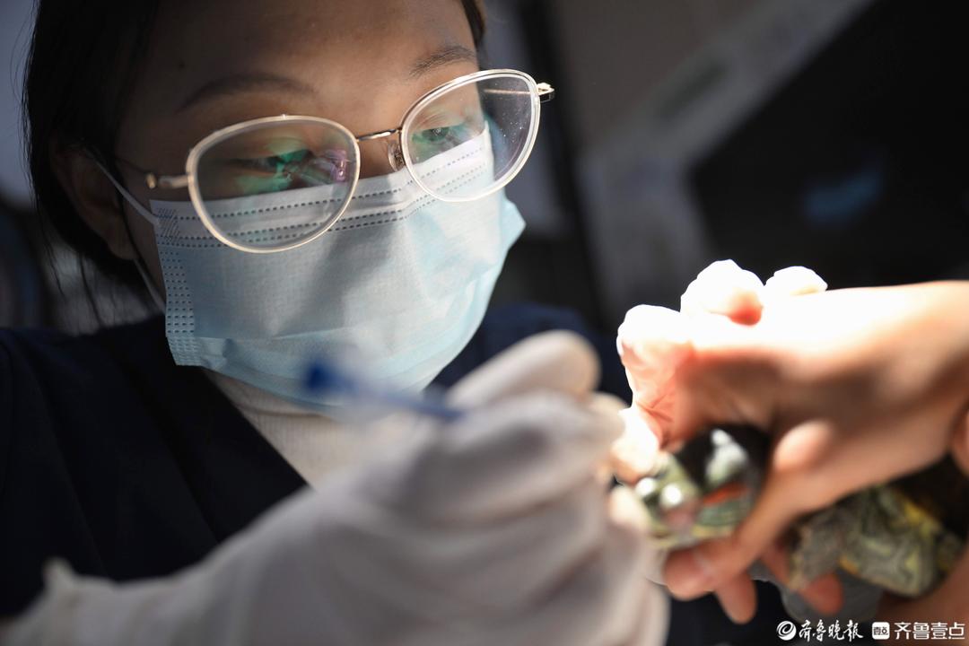 今年3月份,谭艺只身一人来到济南,加入单大夫动物医院,为济南的异宠们看病。“天上飞的,地上爬的水里游的,我看过的病号形态各异五花八门。”谭艺笑着说,现在家里养的比较普遍的异宠就是蛇类、兔子、鸟类、龟类和鼠类。但是也会有不常见的,比如她曾经给只有12克重四厘米长的蜥蜴做过开腹手术,还曾经给重达30多公斤的卡皮巴拉(水豚)治疗肺炎,还曾经给一只稀有的白化乌龟看病……谭艺还记得参加工作第二个月,她为一只小兔子动手术治好了小肠堵塞,兔子主人特地送来一面锦旗:“救我兔命,妙手回春。”收到人生第一面锦旗的谭艺还是很激动的,觉得自己当初选择这个职业是正确的,很有成就感。后来,谭艺收到的锦旗越来越多,治疗过的异宠也数不胜数。“有时候一天得接诊七八个,忙得顾不上吃饭。”