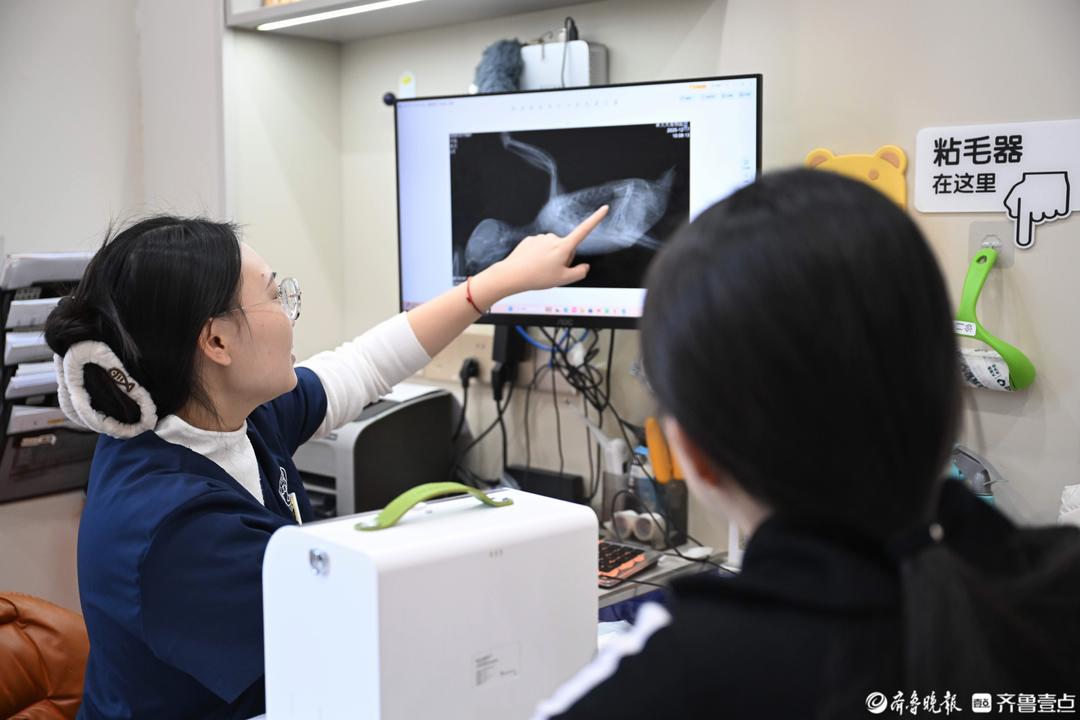 “它的眼睛角膜溃疡了,属于细菌感染。我给你开一个角膜修复的眼药水回去给它滴上吧!”12月17日晚上7点多,在济南花园东路单大夫动物医院门诊室内,一个年轻女孩带着一只鹦鹉前来看病,这只鹦鹉的眼睛已经红肿得睁不开了。正在值班的异宠医生谭艺对鹦鹉的眼睛进行角膜荧光染色检查后得出诊断,并悉心地嘱咐女孩回去如何用药。