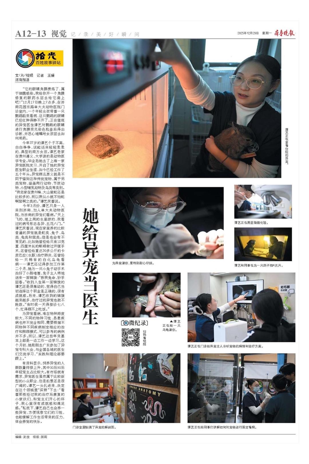 有资料显示,饲养异宠的人群数量持续上升,其中00后90后年轻宠主占比较大。有市场就有需求,异宠医生虽然属于比较新型的小众职业,但是前景还是很广阔的。谭艺一头扎进来,决定在这个领域里“深耕”下去:“看着那些经过我的治疗后康复的小家伙们,和宠主们开心的样子,我心里很有成就感和满足感。”私底下,谭艺自己也会养一些异宠,方便观察它们的习性,也能缓解工作生活带来的压力,体会养宠的快乐。