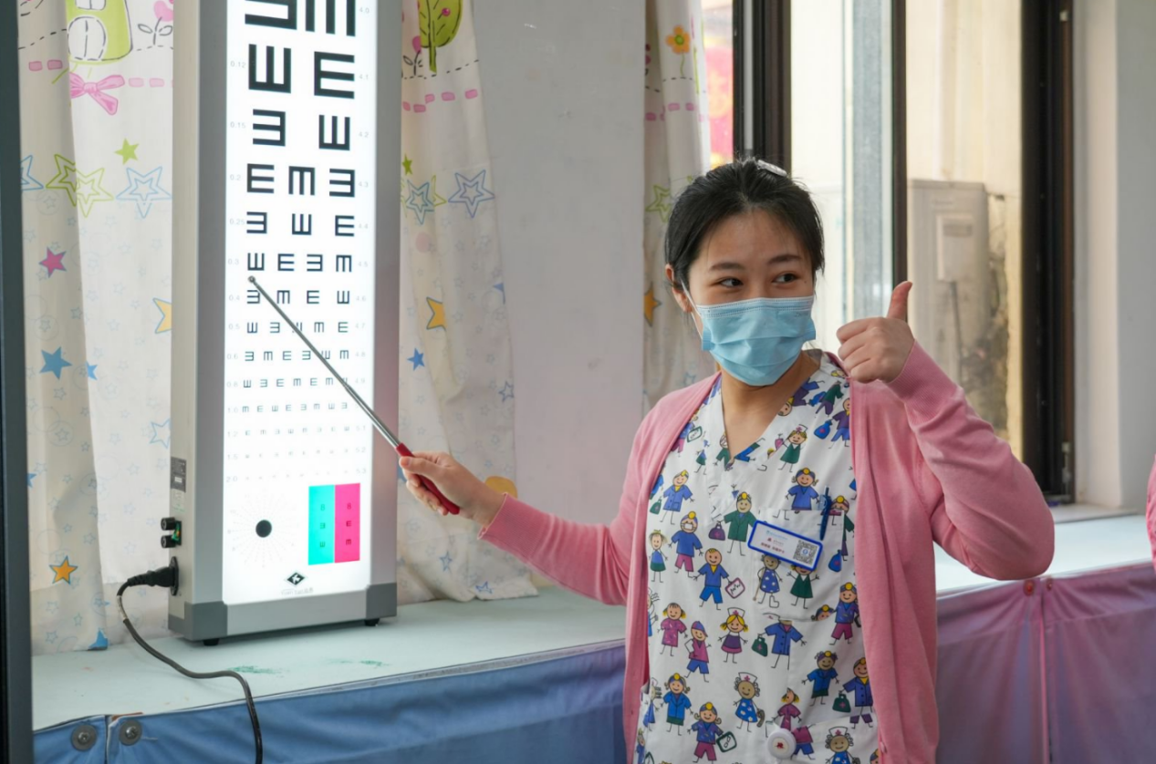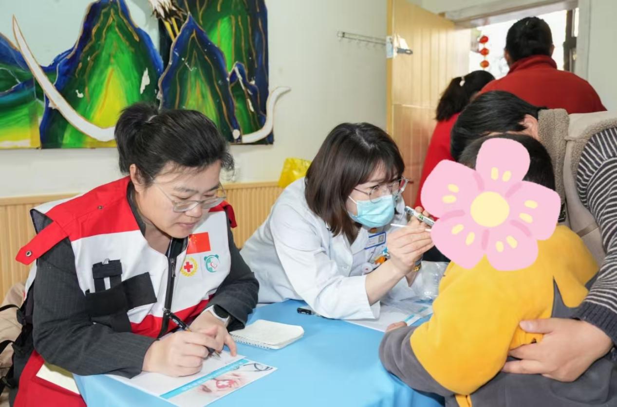 捐赠仪式结束后,义诊环节随即展开。青岛新世纪妇儿医院的医护人员耐心为每一位孤独症儿童开展眼科与口腔科检查,眼科医生刁婉丽柔声引导孩子辨认图形,动作轻柔地检查眼表、测量眼压;口腔科医生张翠美手持牙齿模型,快速又细致地探查每一颗牙齿。两位医生全程温和耐心,用专业诊疗与暖心关怀,为孤独症儿童筑牢健康防线,让义诊现场暖意融融。
