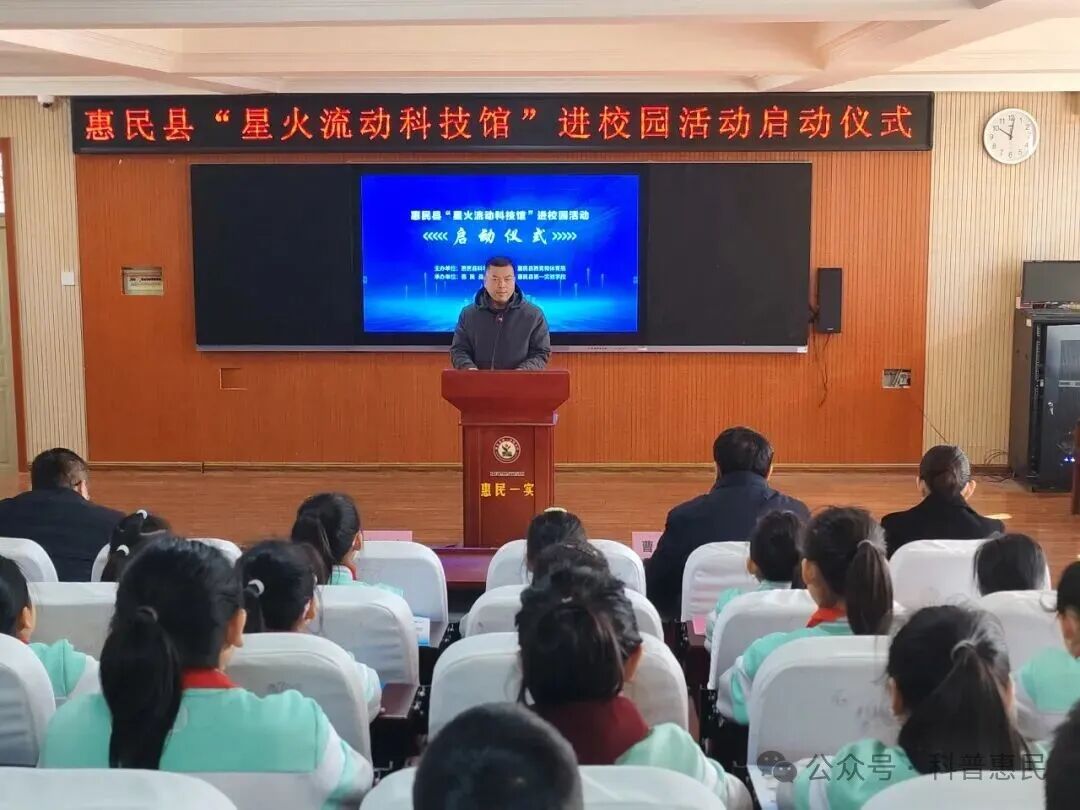 为打破场馆边界,将优质科普资源送到学生身边,激发青少年科学探索兴趣,营造热爱科学、勇于创新的校园氛围,12月25日上午,惠民县“星火流动科技馆”进校园活动启动仪式在惠民县第一实验学校举行。惠民县科协党组书记、主席张连涛,县教体局党组副书记、教研室主任董斌,县教研室副主任、县第一实验学校校长曹波参加活动,县科协党组成员、副主席李翠娥主持仪式,100余名师生代表现场参加。在未来1个月的时间里活动将惠及全校3000余名学生。