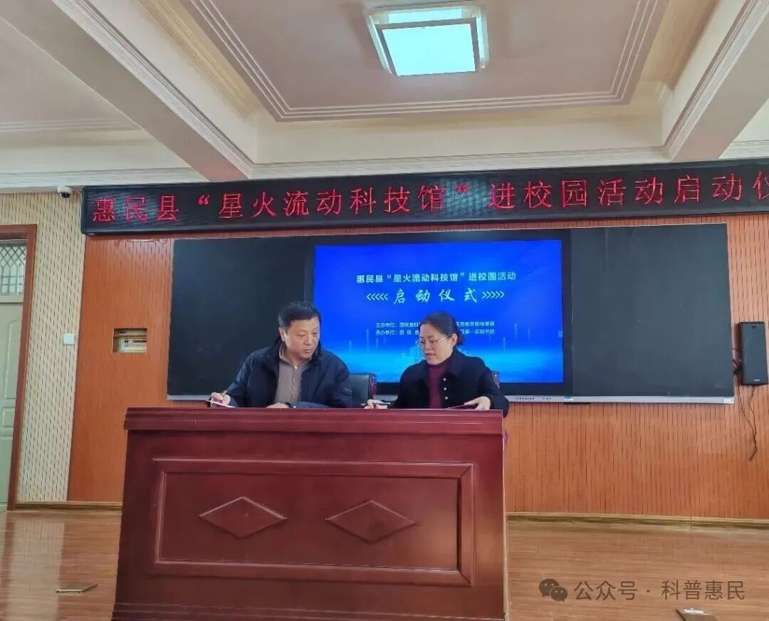 仪式现场,县科协与惠民县第一实验学校签订流动科普展品使用协议,为活动有序开展奠定坚实基础。
