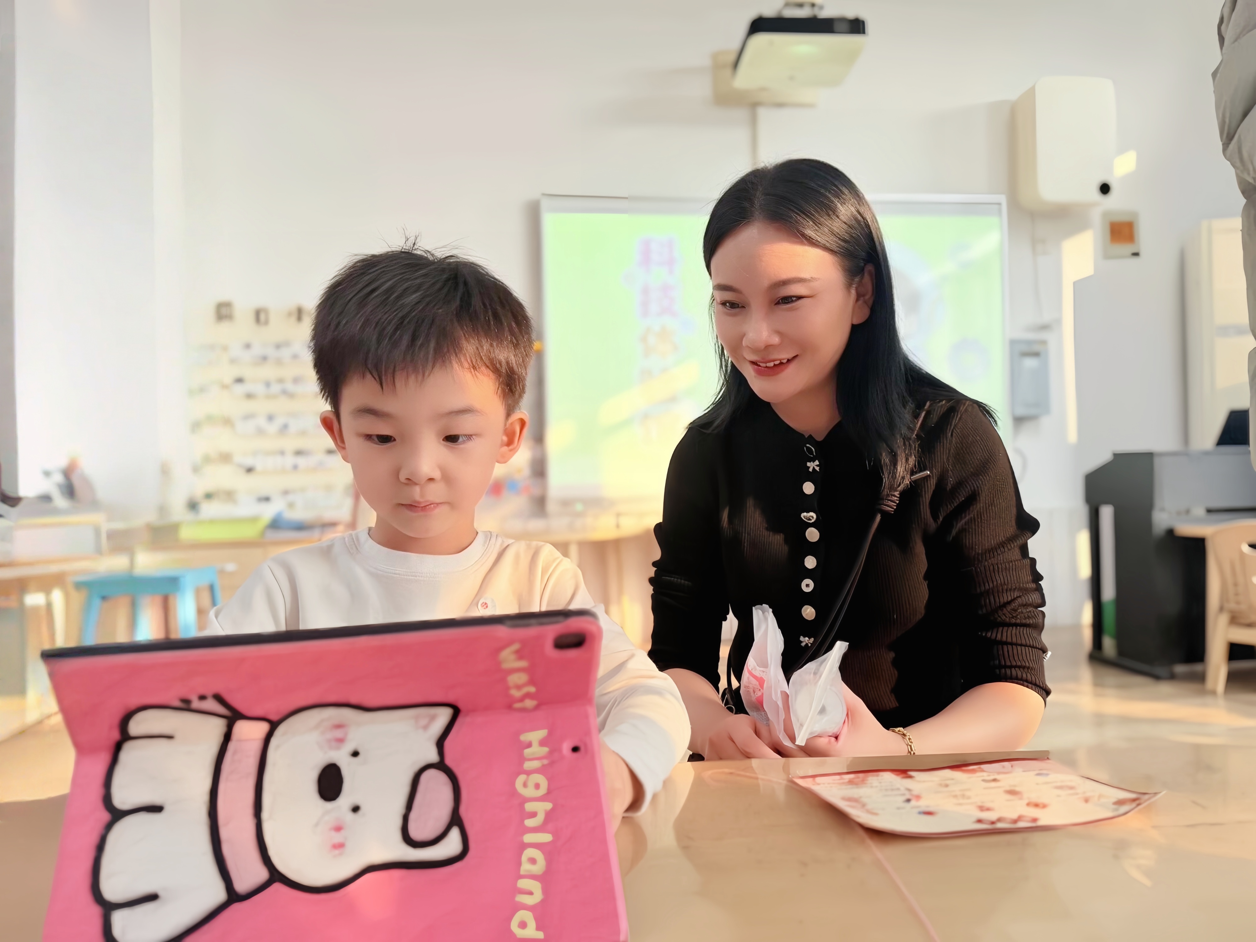游园活动涵盖13个特色体验项目:传统民俗区的蒙眼铲“福”、幸运套不停等游戏,让幼儿在实践中感受“福”文化;中医体验馆里,孩子们品尝保健饮品,触摸中医药魅力;元旦画“圆蛋”、魔法万花筒等活动,寄托幼儿对新年的期许。科技体验区同样精彩,借助家长资源打造的两大体验馆,通过AI绘画、机甲小车等互动装置普及科技知识,科学表演秀为亲子家庭增添欢乐,现场氛围热烈。