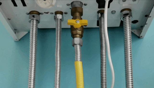 (1)自查壁挂炉燃气阀门是否处于开启状态,阀柄与燃气软管平行为开启状态,阀柄与燃气软管垂直为关闭状态。