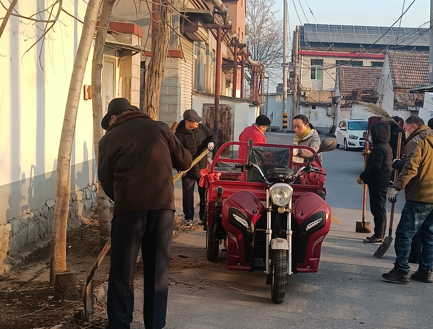 “大爷,路上的垃圾我们帮着干吧,您可以歇歇!”身着红马甲的党员干部们分片包干、分工协作,成为冬日街巷里最亮眼的风景线。扫帚摩擦地面的“唰唰”声、铁锹铲运杂物的“哐当”声、刷子清理“牛皮癣”的“沙沙”声交织耳畔,永安社区、小庄村、饮马村、南万山村等村居的党员干部们弯腰俯身,不放过任何卫生死角——有的徒手捡拾墙角烟头纸屑,有的合力搬运堆积的枯枝杂草,有的细致擦拭公共设施,用汗水为岁末收尾,为新春铺就洁净底色。